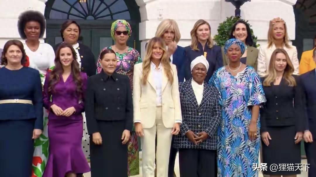 美總的夫人梅拉尼婭發起了“攜手共創未來”全球聯盟峯會,看看來的都有誰。這是他們在峯會最後一天拍的合照,梅拉尼婭作爲東道主穩居C位,她還邀請了部分國家的第一夫人,從她們的穿衣打扮就能看出來有非洲的和歐洲的。其中包括法國馬克龍的夫人布麗吉特,她在合影第二排中間位置,也就是梅拉尼婭的身後。