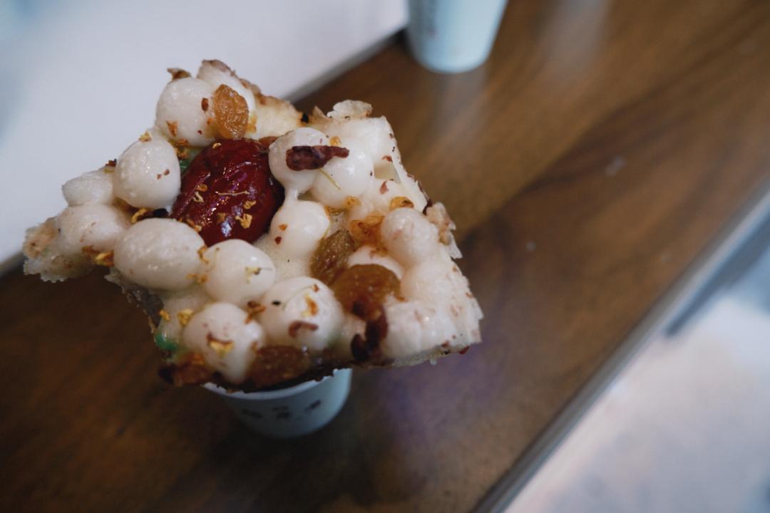 再咬一口,整隻大蝦藏在裏頭,肉質彈牙;細碎的銀魚若隱若現,不搶戲,卻讓鮮味多了層次感。