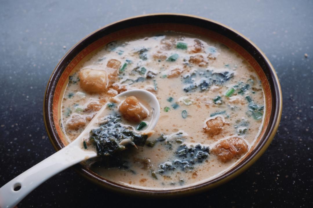 看着熱乎乎的豆漿衝進碗裏,蔥花蝦皮紫菜瞬間被激活,一口下去,整個人都醒了。