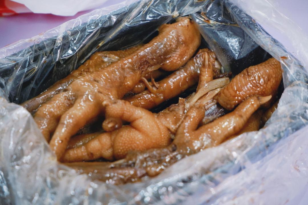 招牌原味雞腳,16元4只,提前滷好裝在袋子裏,拿了就能走。打開袋子,滷香撲鼻,雞腳個頭不大,但色澤油亮誘。