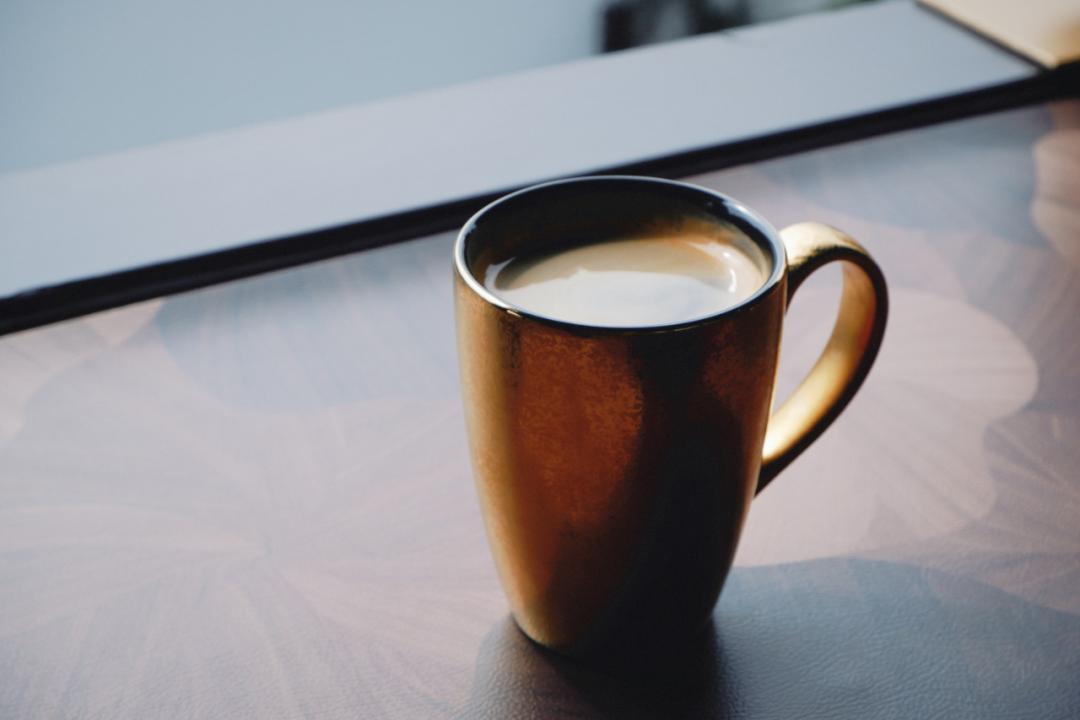 咖啡館保留了老房子的木樑青磚。選用的器皿也很有意思,所有杯子都用鎏金材質,金燦燦的。