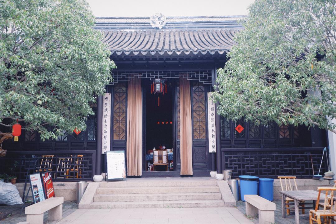 門臉很不起眼,走進去才知道——這裏是元代古昭慶寺的舊址,六百多年曆史的老宅子,現在是聽評彈的地方。