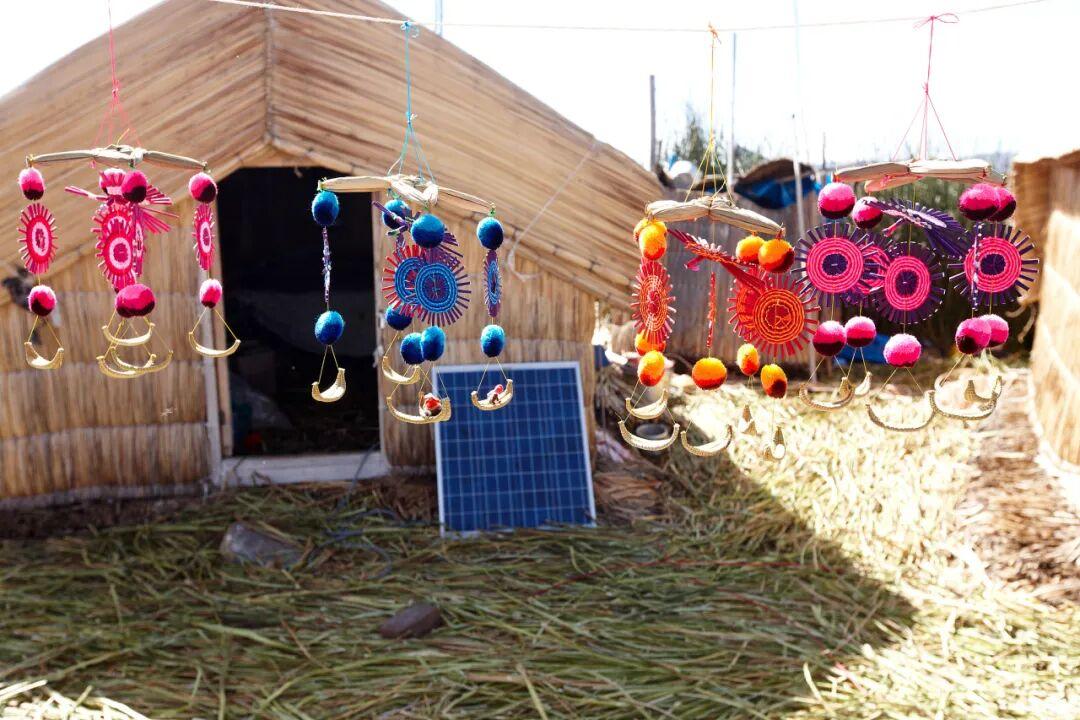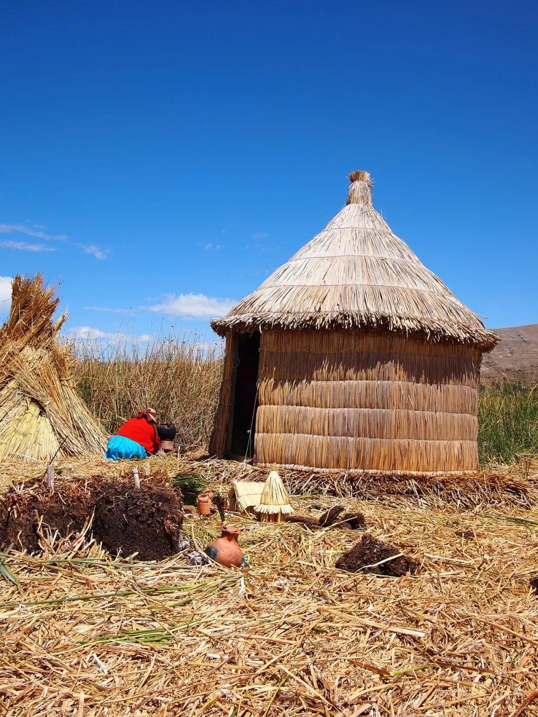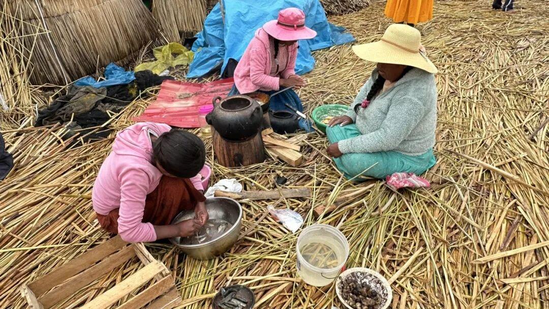 目前在的的喀喀湖上有四十幾座烏羅人的草浮島。其中大的方圓兩三百平方米,住十來戶人家。小的只有不到百平米,住一、兩戶人家。我們的遊船在海洋一樣遼闊的大湖中行駛了一個多小時,才靠上了一個草島的小碼頭。兩個女主人在船邊迎接我們。她們五顏六色的傳統衣裙在灰濛濛的天色下十分豔麗。這是一個大約有一個籃球場大小的草島,坐落在用厚厚的託托拉草編成的墊子上,四下分散着幾間草房。一個女人帶着兩個小女孩坐在房門口,正在清理從湖上捕撈上來的小魚。她們都羞怯地低着頭不好意思看上島的遊客。提提咯喀湖草島作爲祕魯的主要旅遊項目已經開發了三十來年了,但烏羅人仍保持着謙卑低調的特質。