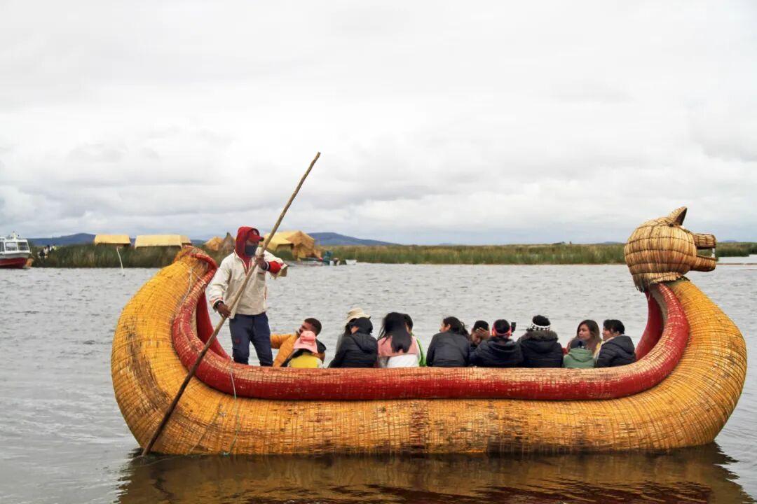 我們被邀請上了一條草編的大鴨子船去湖上轉一圈。兩個小女孩立刻放下手裏的活兒,跟着我們跳上了草船。我以爲她倆要在船上表演什麼,但只見她倆上了船就分別在兩個面善的遊客身旁坐下來,不言不語,甚至不好意思抬頭看我們。就這樣一直到草船在湖上轉了一圈後,兩個小女孩一句話也沒說,又默默地跟着我們回到島上。後來我在回顧旅行時,看到別人的攻略才明白,原來這兩個小女孩是在等待遊客給她們小禮物——烏羅人的孩子對禮物也索要得這樣無聲無息。