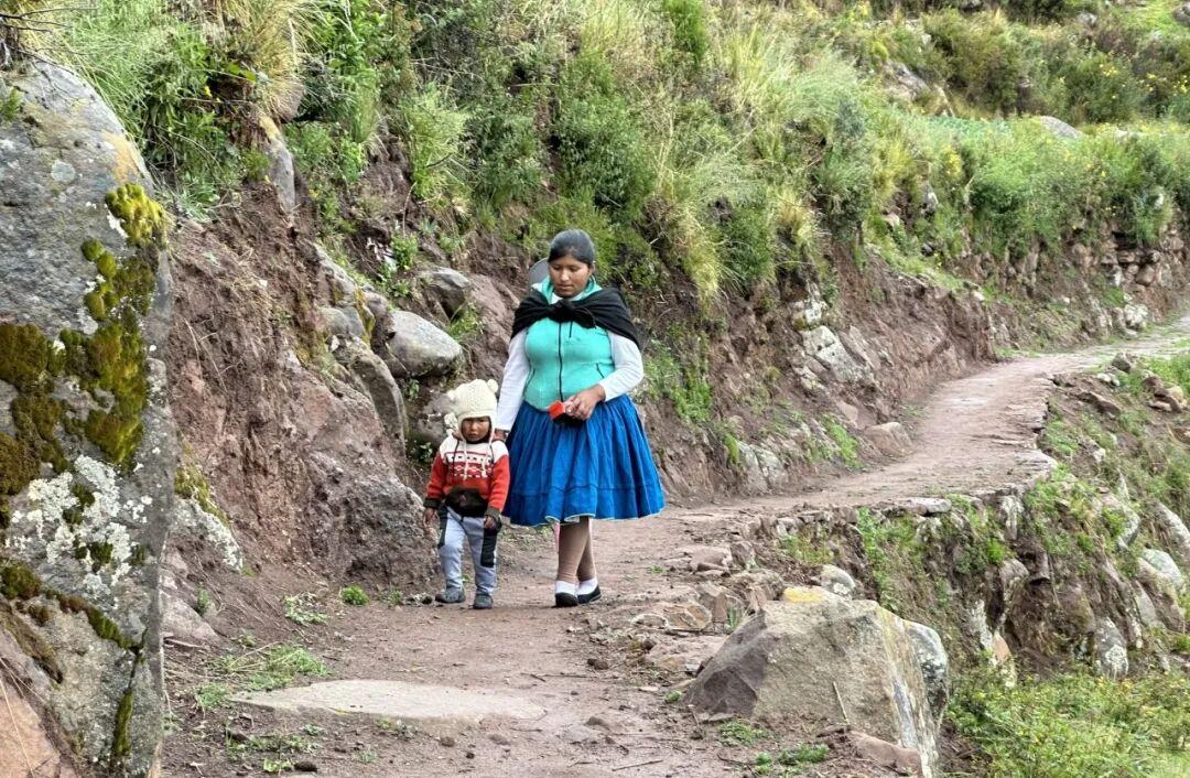 離開烏羅人的草島,我們又去一個名爲塔基萊的真正湖中島。這個面積爲5.7平方公里的小島上居住着兩千多講奇楚亞語的原住民。與烏羅人相反,奇楚亞人是印加帝國最直接的後裔。六百多年前,正是奇楚亞人的祖先征服了安第斯高原上的各個印第安部落,建立起了強大的印加帝國。這個帝國除了有不同的民族和部落外,還有着不同的等級。在印加帝國時代,奇楚亞語是帝國的官方語言。奇楚亞人也享有高貴的地位,是印加帝國的“白天鵝”,至今他們仍傳承着印加帝國的文化傳統。