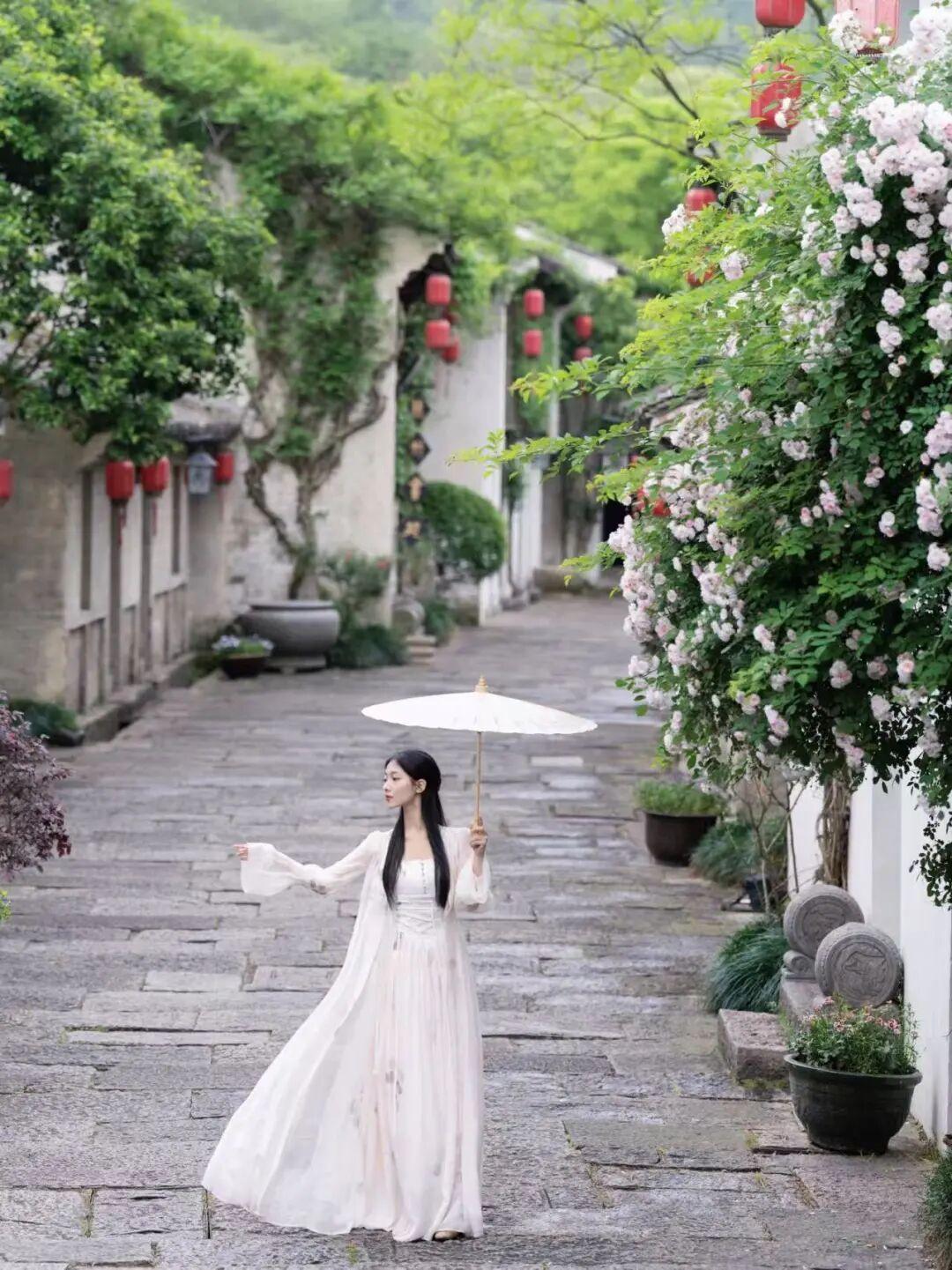 我最推薦的就是薔薇花季來大禹開元觀堂,花期會比較長,拍照也好看,特別適合拍人像。