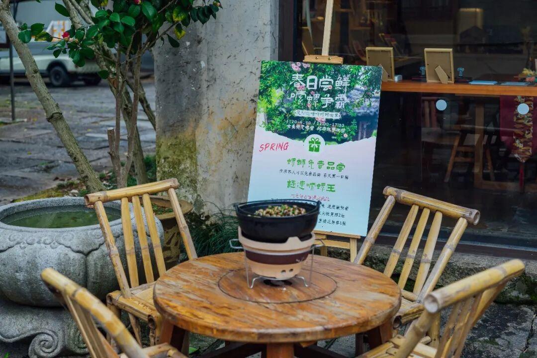 春江水暖,螺螄正肥。住店客人都可以在故事工坊參賽,一分鐘嗦螺螄挑戰,周冠軍送黃酒兩壇,月冠軍直接送房券哦。