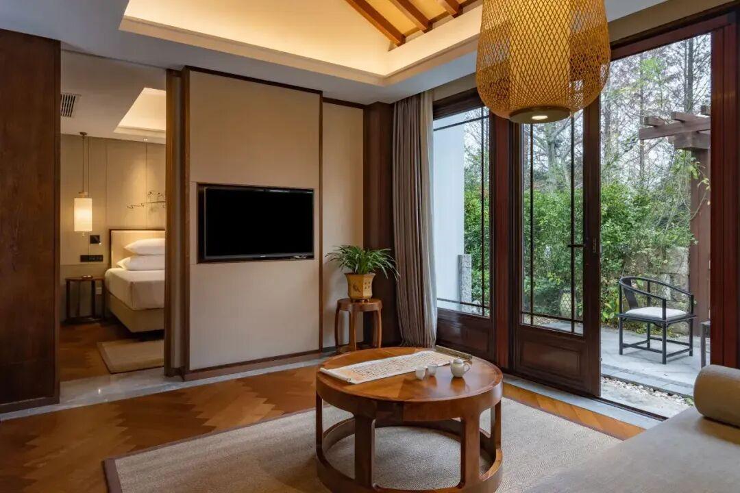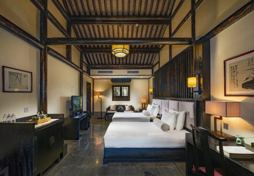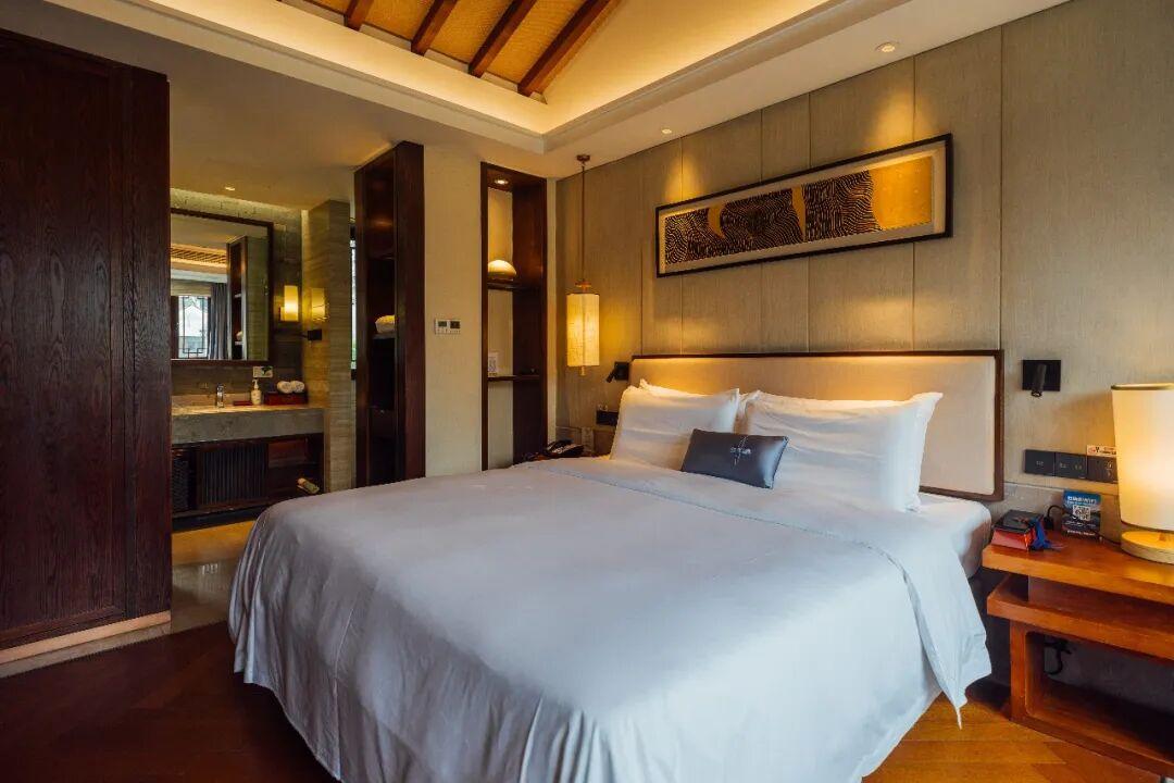 西岸是酒店一期,風格就是以原始的自然生態爲基調的,枕水居、臨水居,都是比較偏中式的,我估摸着家裏長輩喜歡,房間的設計也是古色古香的,中國味濃厚。