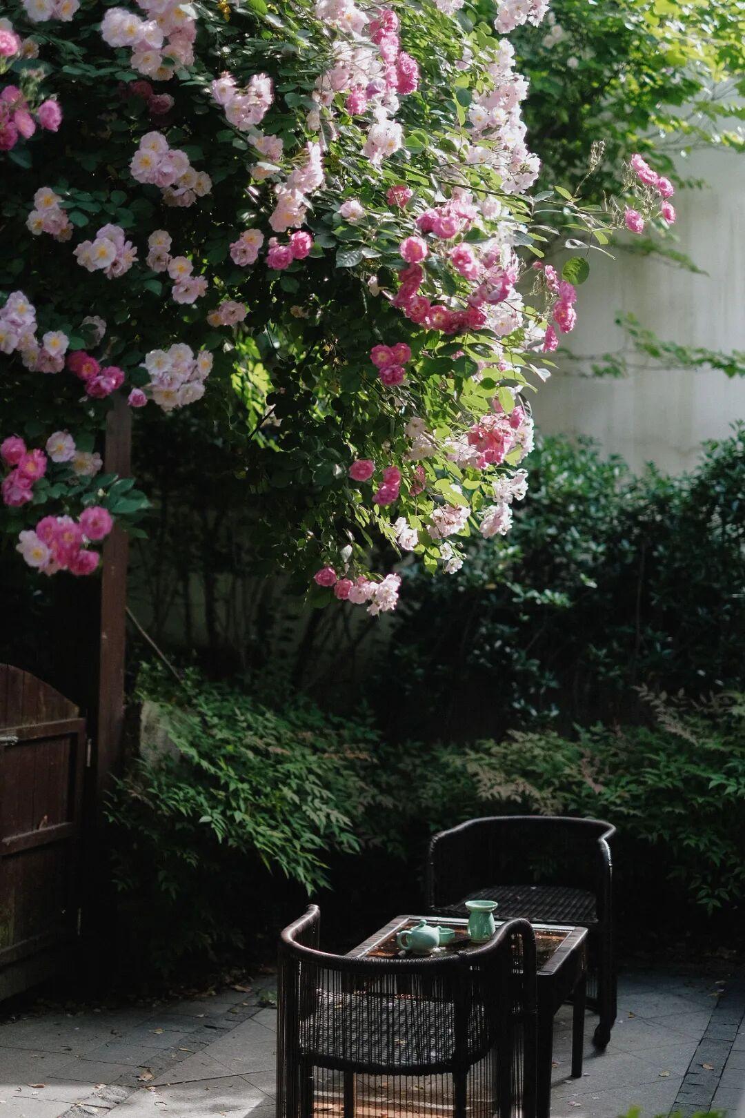 尤其是前段時間春促買了庭院別墅套餐的朋友,一定要在薔薇季來住!這個房型完全是“花景房”,在房間內的院子裏就能賞花,薔薇花下喝個茶,不負春日好時光。