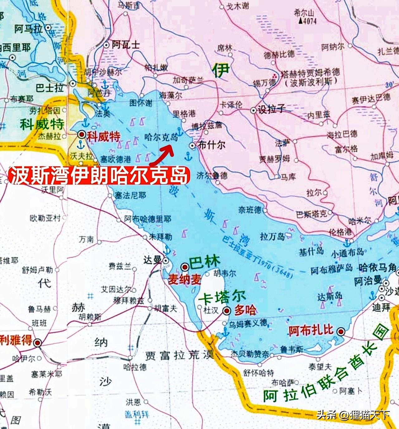 哈爾克島在伊朗的布什爾港附近,那裏離科威特挺近,是波斯灣比較內側的區域。伊朗在這個島嶼打造成石油出口港,通過管道連接德黑蘭——庫姆——伊斯法罕——設拉子——布什爾港——哈爾克島,這就是伊朗石油運輸的主要通道之一。