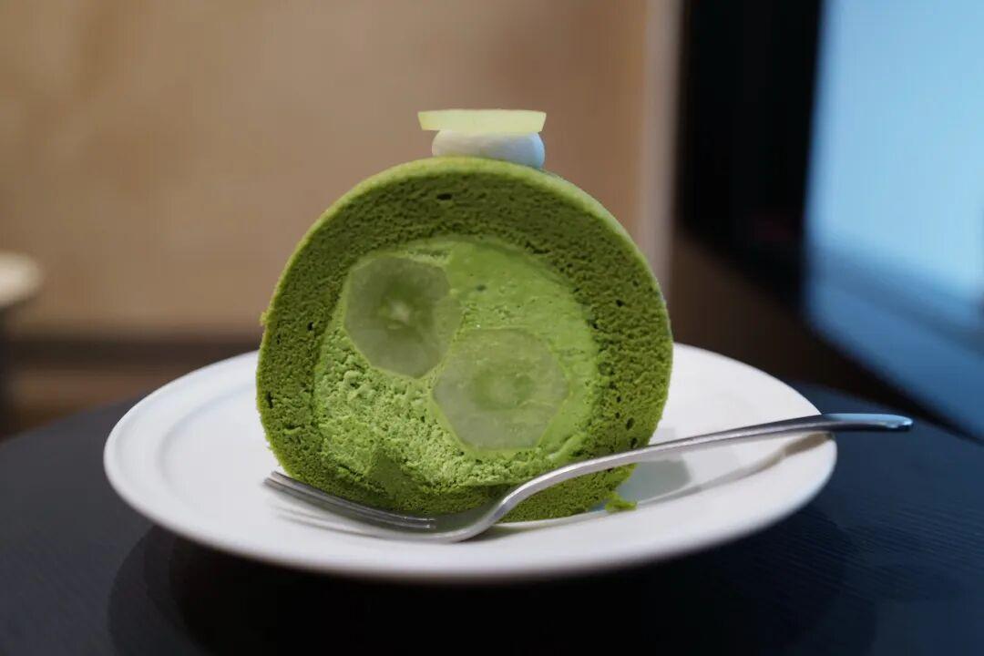 好不容易登島了,蛋糕卷也得嚐嚐,口味選擇很多。我點了一款「抹茶茉莉青提卷」,糕體蓬鬆溼潤,抹茶的香氣也濃,整個人都被甜品帶來的幸福感包圍了。