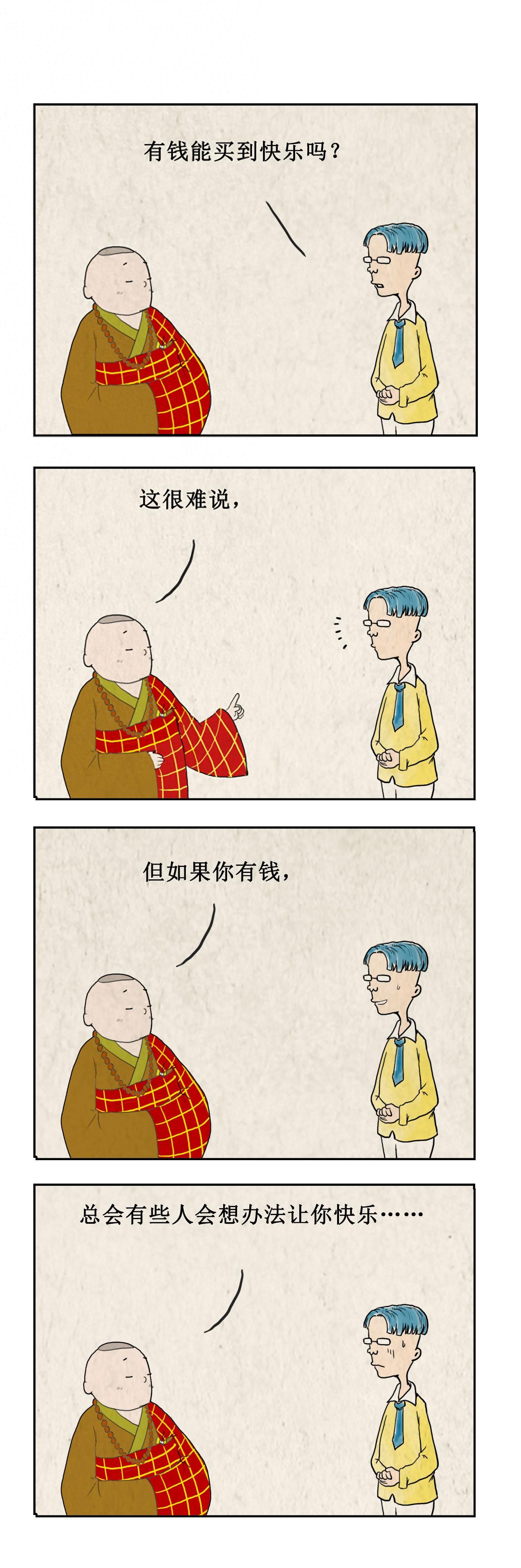 那天晚上,他做了個夢。夢裏,他變成了一隻炸毛的雞,對着一隻耷拉着耳朵的狗大喊:“你可以不開心,但不能沒出息!”