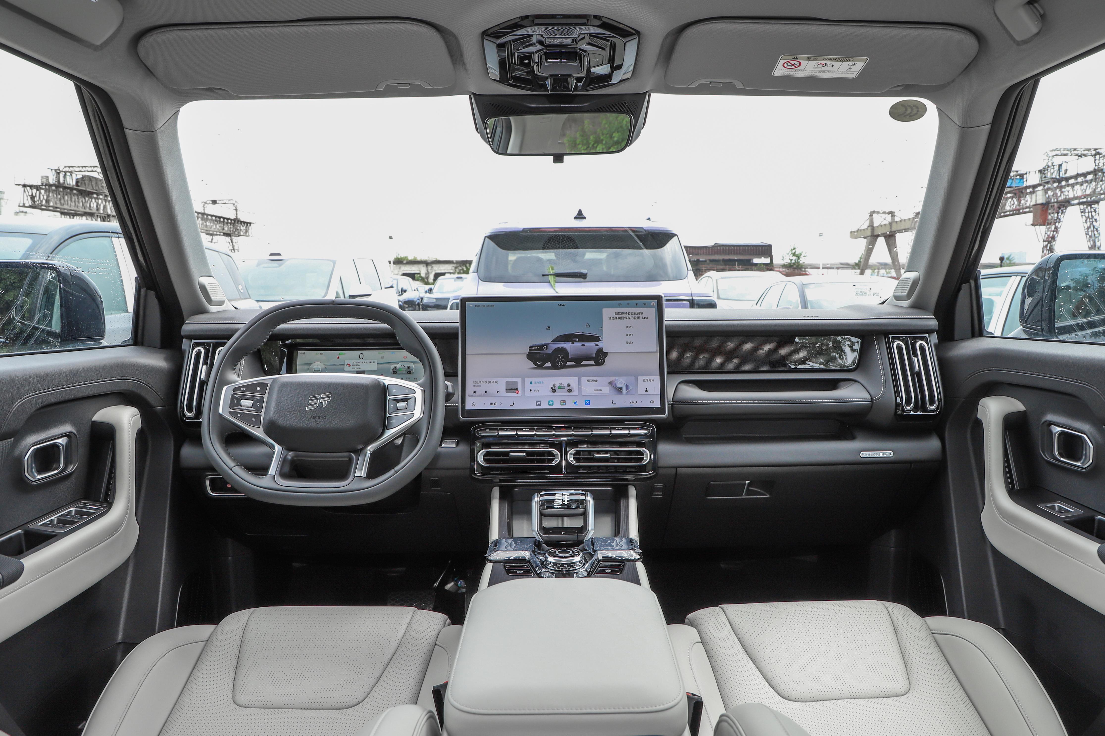雖然是兩驅版,但是捷途山海T1的越野性能遠遠超過城市普通SUV。它的底盤採用前麥弗遜獨立懸架和後五連桿式獨立懸架的組合,配合承載式車身,日常開起來舒適性不錯,過減速帶、坑窪路面時,濾震效果好,車身不會有太顛的感覺。通過性更是出色:接近角28度、離去角29度、離地角度僅200mm,涉水深度600mm,這些數據意味着它能輕鬆應對雨後泥濘路段、鄉村土路、30度的小斜坡,甚至20cm高度的臺階也能順利通過。四驅版本還配備三電機和差速鎖,“7+x”智能越野模式通過基礎模式的多樣化選擇,滿足不同不同路況下的駕駛需求。而x模式的智能識別和一鍵操作功能,則進一步提升了越野的便利性和安全性。