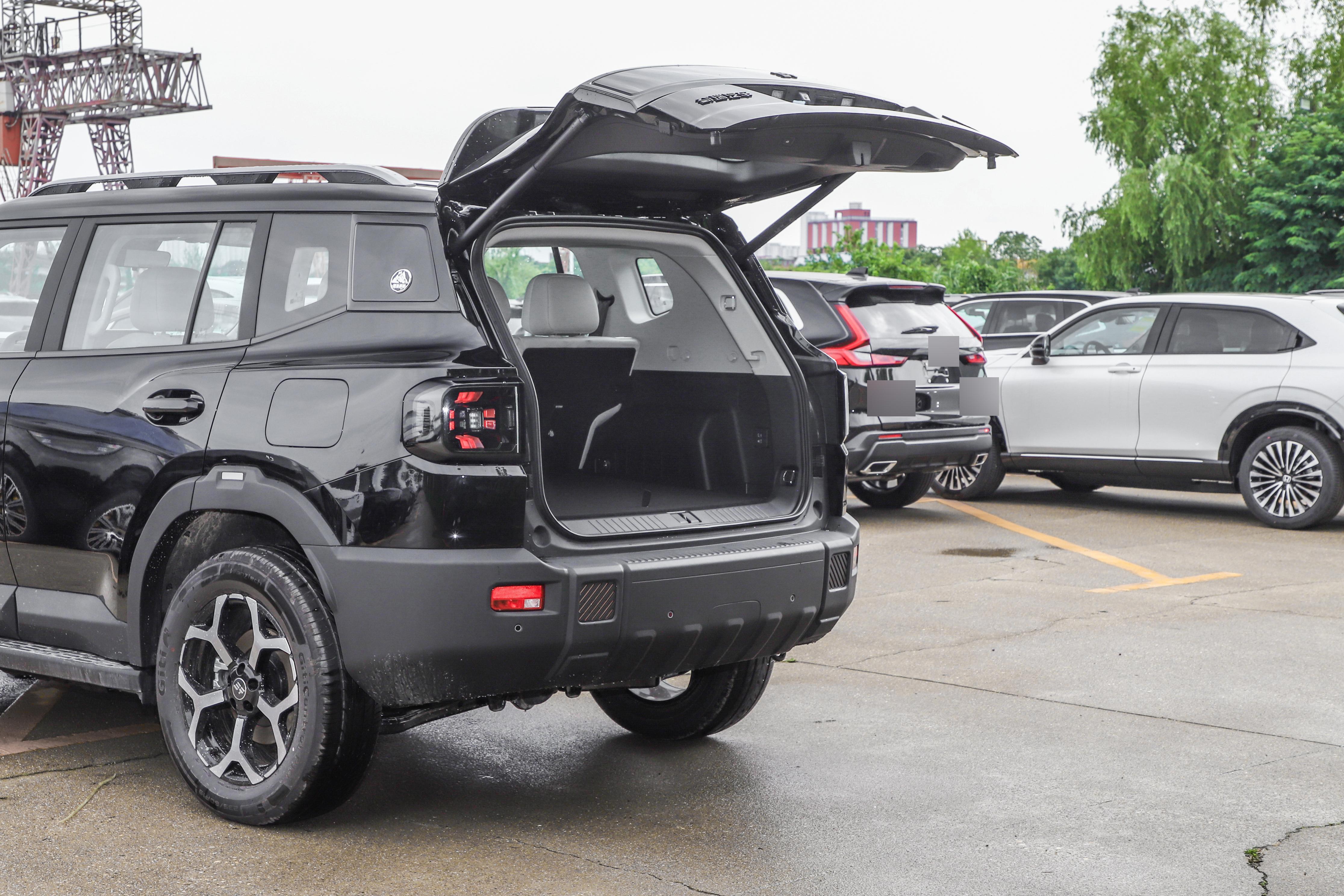 儲物空間更是驚喜,車內提供26處儲物點,隨手都可以找到放置東西的地方:中控臺下方的鏤空儲物格,手機、鑰匙隨手都可以放。門板儲物槽很深,可以裝下2L的大水壺;中央扶手箱深度28cm,裏面可以裝6瓶550L礦泉水;後排兩側座椅還有隱藏式杯架,中央扶手放下後能放兩個杯子。後備箱是“重頭戲”,常規容積453L,可以輕鬆裝下4個24寸行李箱,日常買菜、接孩子完全夠用。要是需要搬放大件物品,需要把後排座椅按4/6比例放倒,能形成一個近乎純平的空間,縱深達1950mm,寬度達1300mm,容積瞬間提升到1590L。這樣無論搬家裝傢俱還是戶外露營“2米大牀房”,都不在話下。甚至可以裝下2個28寸行李箱和一個嬰兒座椅,實用性拉滿。更令人驚喜的是後備箱還有45L的下沉儲物空間,一些零碎的工具、露營裝備都可以放置在這裏。不需要堆放的亂七八糟,收納更規整。