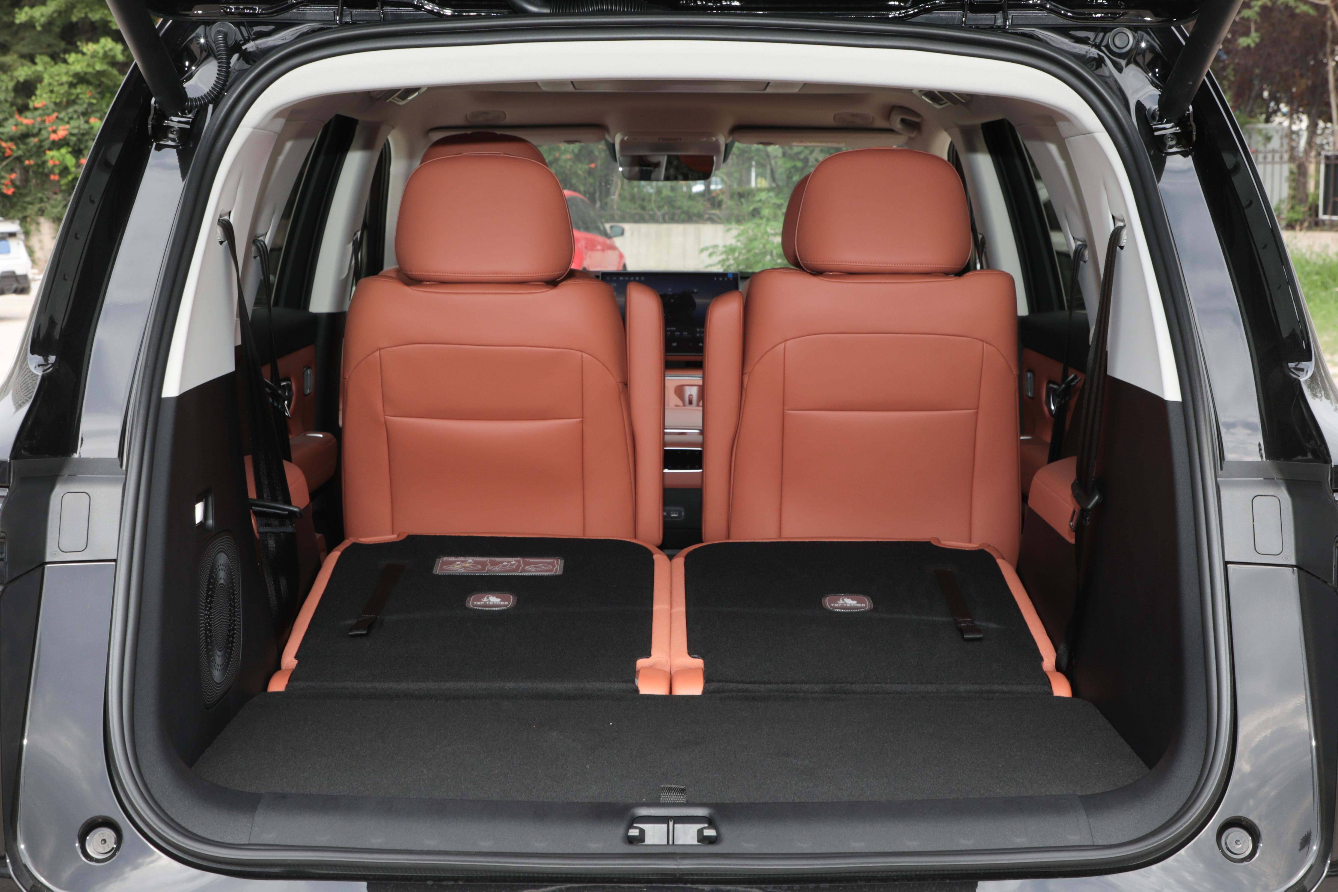 作爲中大型SUV,它的車身尺寸相當可觀,軸距也很長。座椅採用2+2+2佈局,車內空間寬敞,空間利用率高,車內容積驚人。全車包括多處靈活的收納區域,像手套箱、門板儲物箱、中央扶手箱等可以裝下各種隨身物品和兒童玩具零食。後排配備可調節杯架,前排配備扶手。後備箱常規容積就不小,6人滿員能裝下兩個24寸行李箱,純電版還有下沉空間。後排座椅放倒後,容積能大幅度拓展,嬰兒車、玩具車、燒烤架啥的都能裝下,相比緊湊型傳統MPV空間更具優勢。