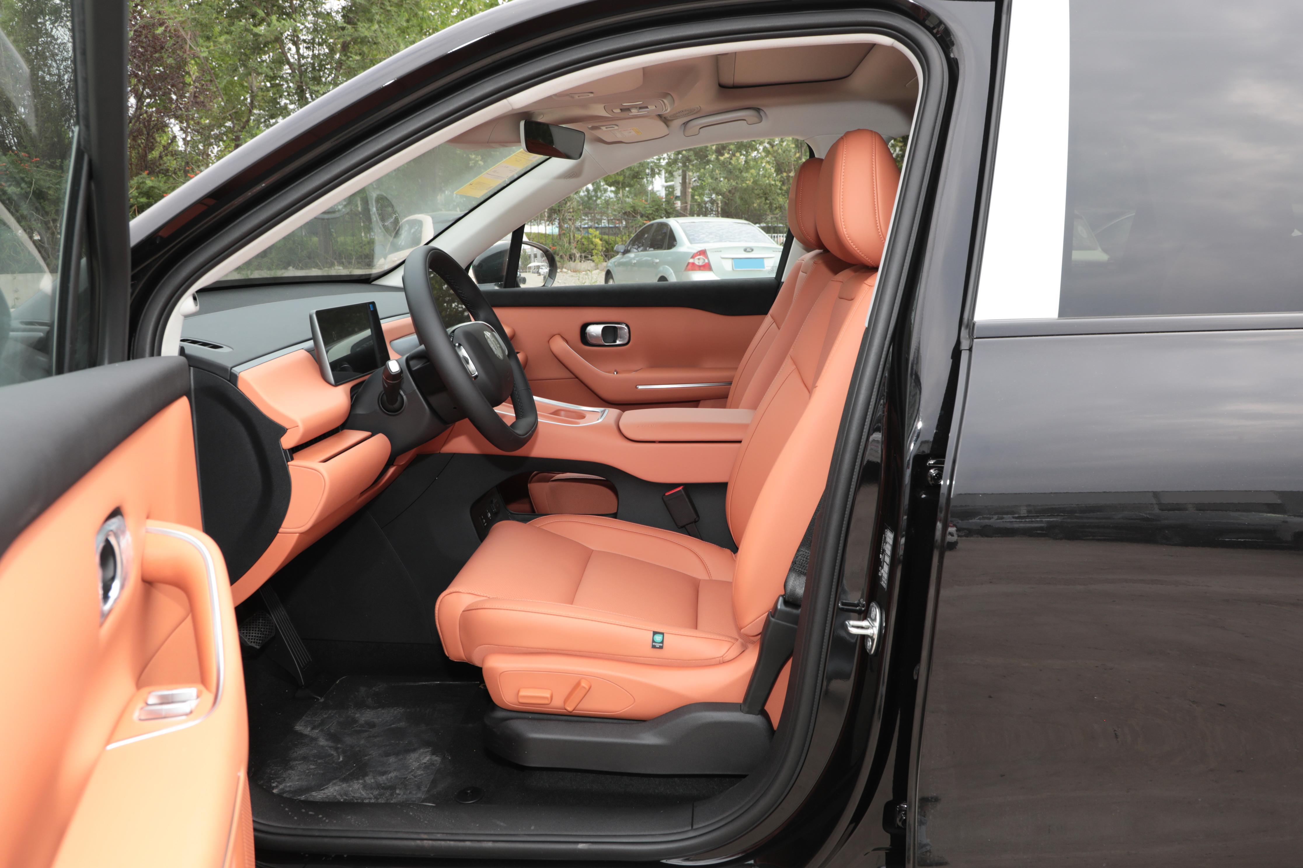 駕駛座艙採用環保式佈局,雙福式幅底方向盤採用皮質包裹,不僅握感舒適,還支持加熱功能,這樣冬天寒冷天氣,開車貼心多了。方向盤後面是10.25英寸液晶儀表盤,界面清晰,無論續航、導航,還是行駛里程、剩餘電量等信息一目瞭然,駕駛員可以隨時掌握車輛狀況。中控臺區域搭載14.6英寸懸浮式中控屏,屏幕分辨率高2560×1600,顯示效果細膩又通透,操作起來絲滑流暢,一點也不卡頓。屏幕下方取消了傳統的物理按鍵,所有功能都通過觸控或語音控制,中控臺變得簡潔多了。還有那個懷擋式換擋系統,不僅節省了中控空間,還操作起來特別便捷。只需要輕輕一撥就能完成換擋,新手也能快速上手。