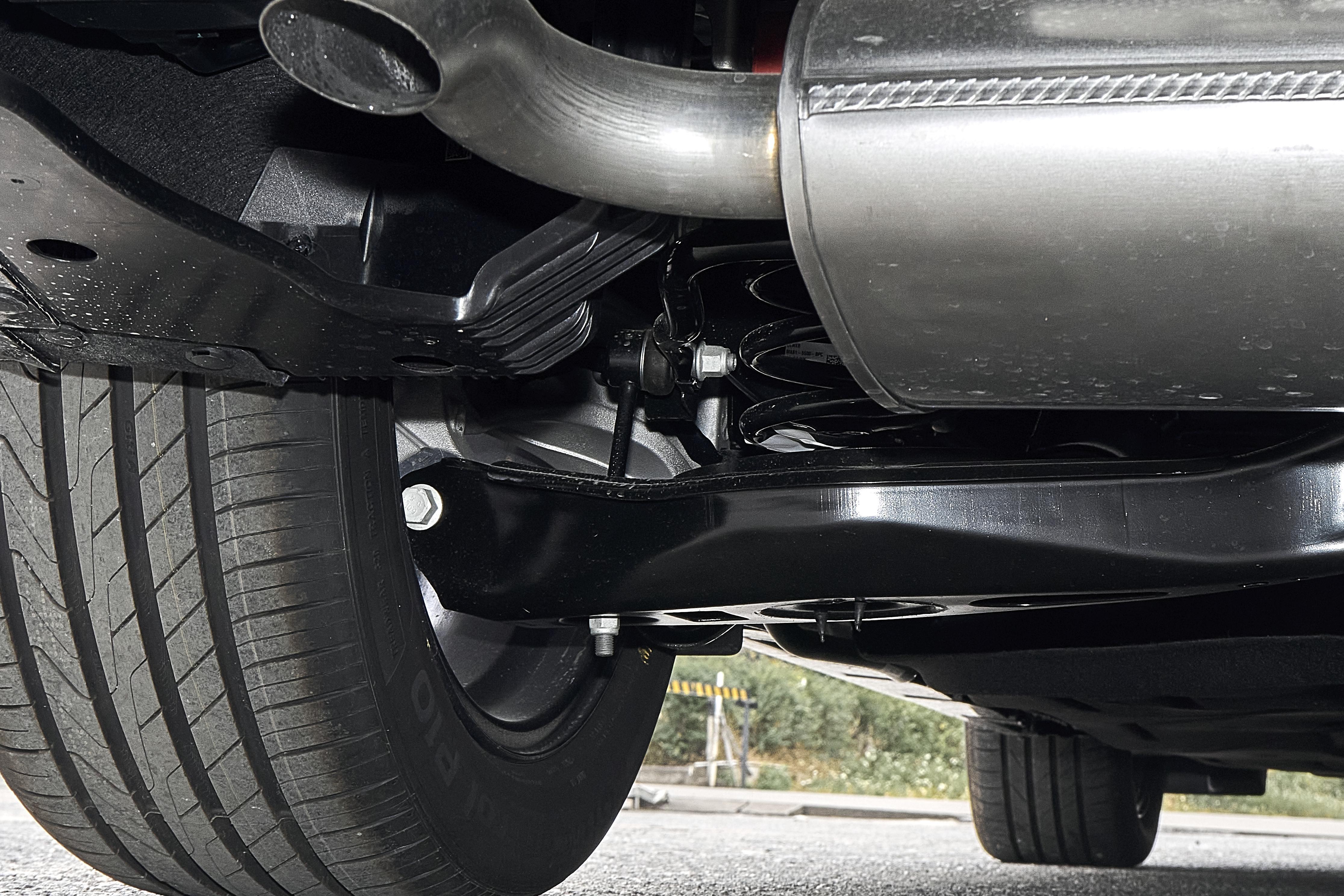 底盤和懸掛,新蒙迪歐延續福特操控基因,底盤懸掛採用前麥弗遜式獨立懸架+後多連桿式獨立懸掛的經典組合,兼顧舒適與運動調校,前懸掛的下襬臂與轉向節採用鋁合金材質,通過打孔減重設計降低簧下質量,讓轉向響應更靈敏,車頭跟隨性出色,城市穿梭或變道時“跟手”感十足。後多連桿懸掛優化了縱向控制臂連接點,搭配高階襯套,能均勻分散路面衝擊力,有效過濾細碎顛簸與減速帶衝擊,傳遞到車內的震動更柔和。底盤以高強度鋼打造,剛性紮實,過彎時側向支撐充足,車身側傾幅度小,配合精準電動助力轉向,高速行駛時方向沉穩,低速挪車則輕盈省力。底盤還配備大面積完整護板,既保護機械部件,又優化空氣動力學性能,減少高速風噪和亂流,讓車內顯得更加靜謐,同時保留美系車穩健質感,無論是市內通勤、高速巡航還是郊區山路,都能平衡駕駛樂趣與乘坐舒適性。