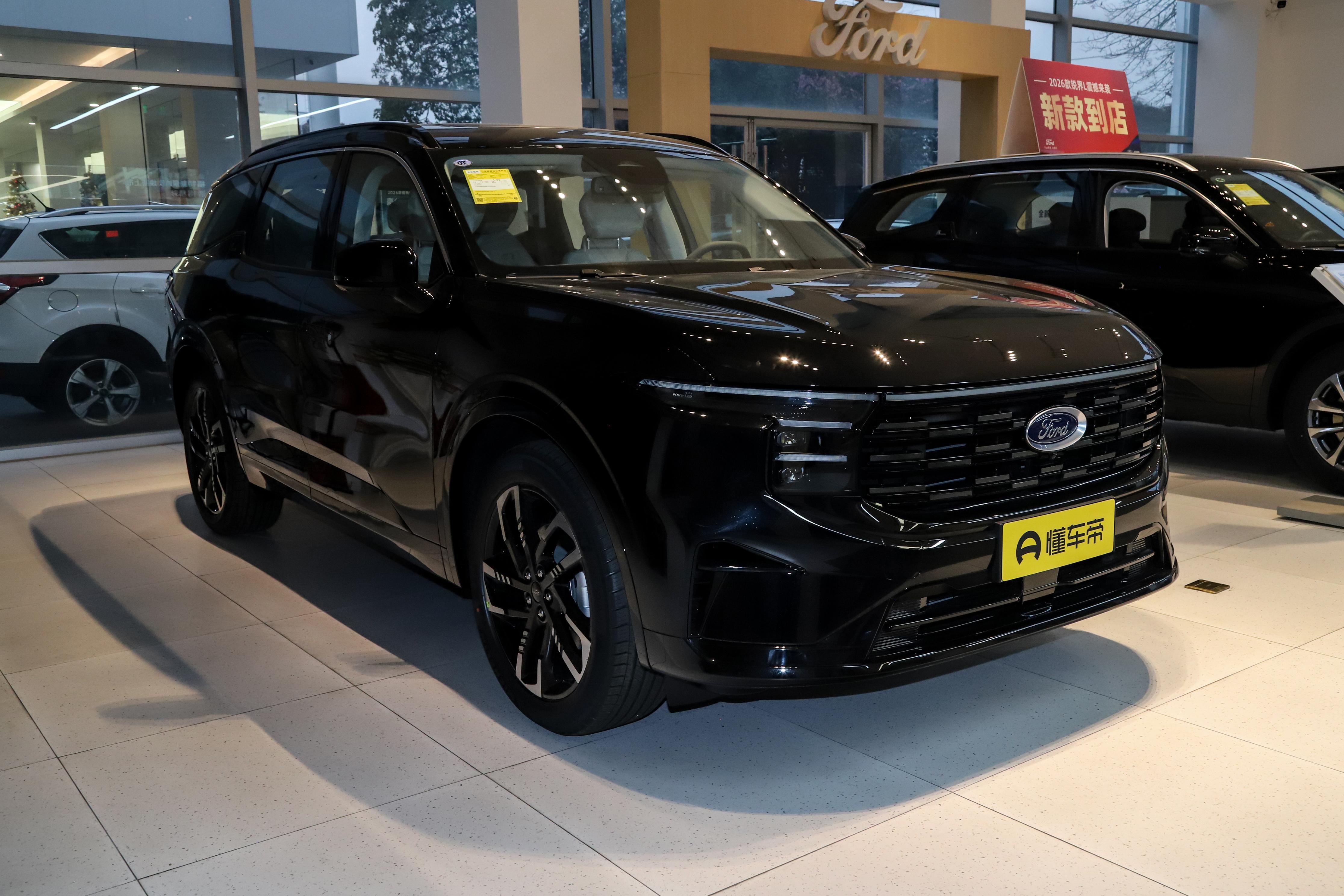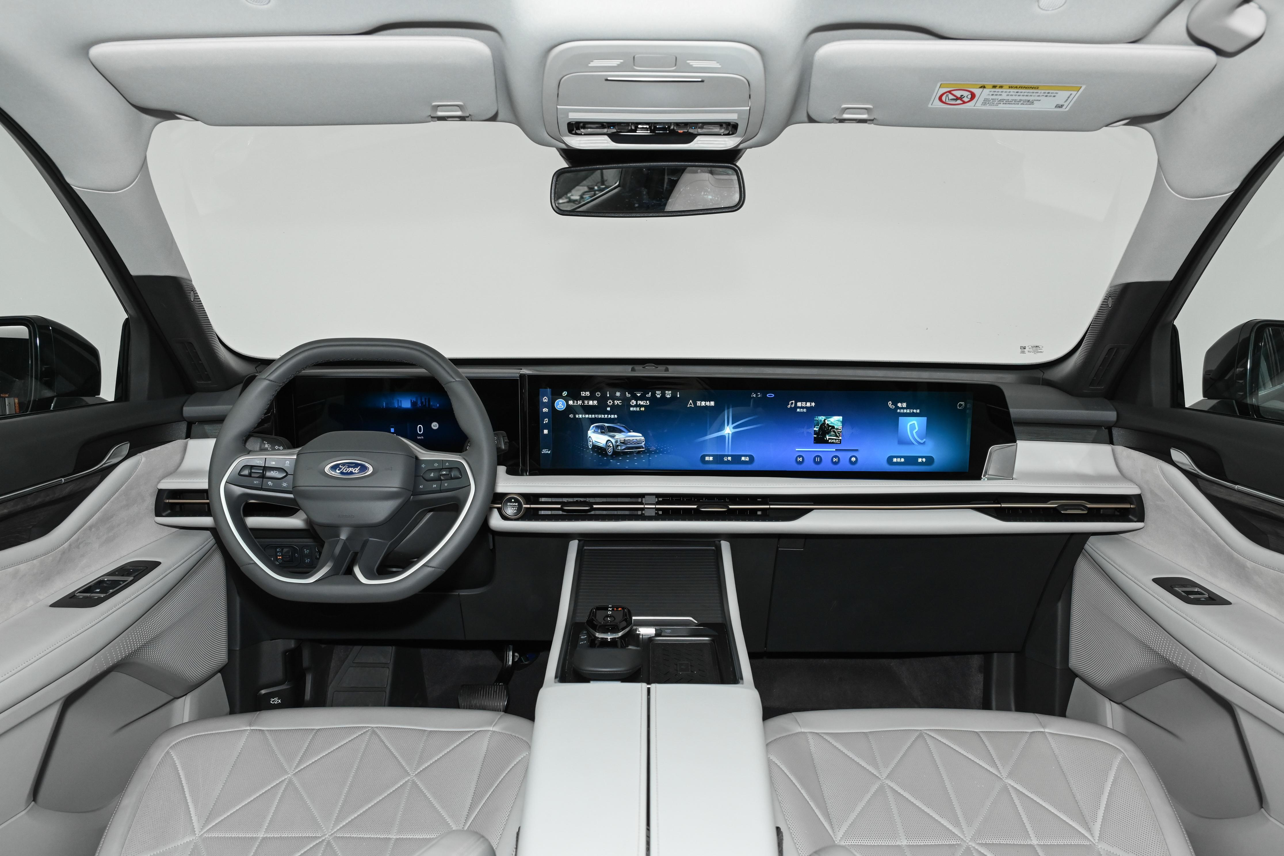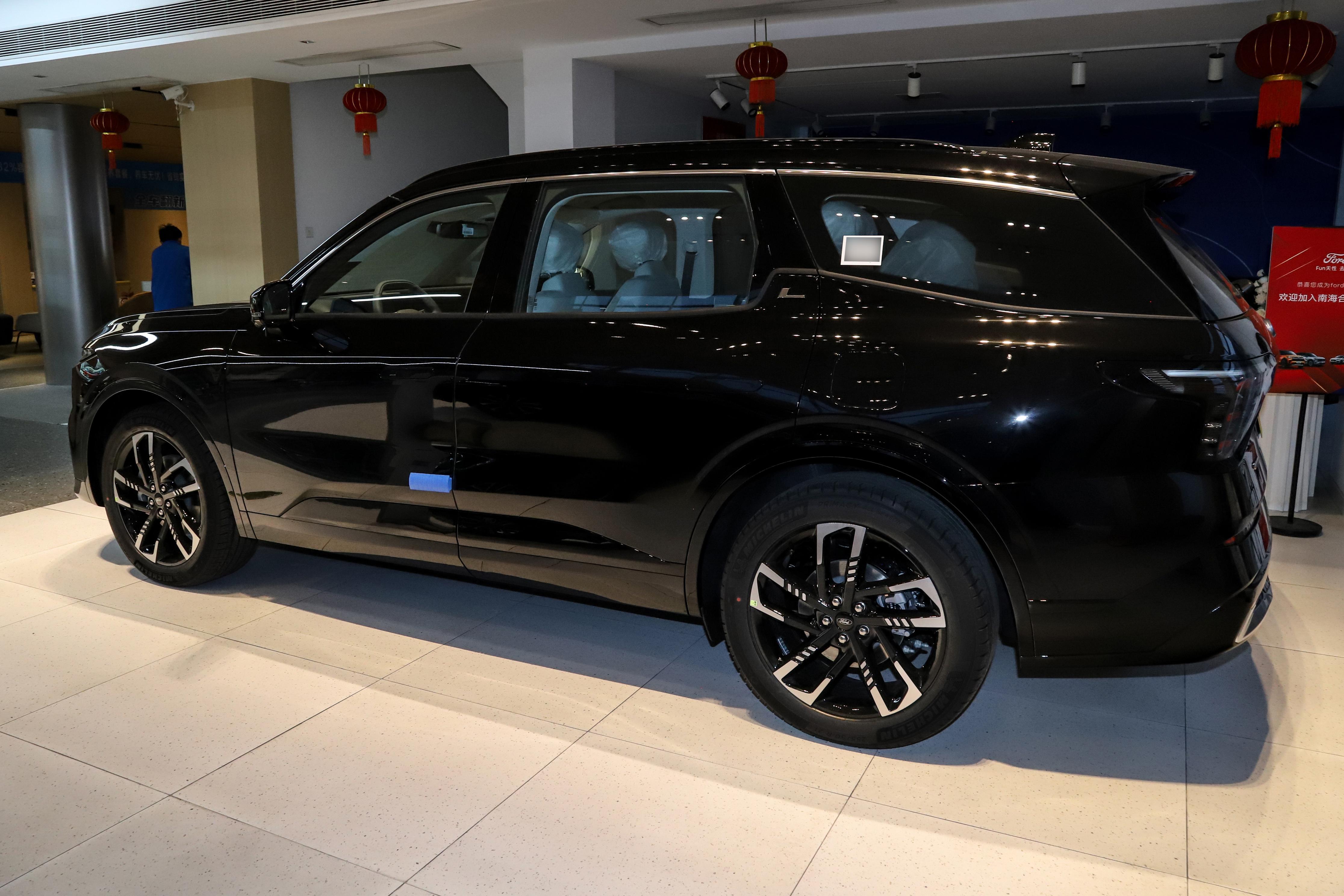 車身側面像遊艇一樣懸浮,B柱和 C 柱都做了黑化處理打破了傳統SUV 的笨重感,採用隱藏式門把手不僅看起來車身線條流暢,還大幅度降低了風阻,讓車跑起來更省油,車長5米,軸距接近3米,尺寸擺在那兒,側面線條非常舒展,看着大氣。車尾採用貫穿式設計,中間有福特車標連着,不僅拉寬了車輛橫向寬度,晚上點亮後辨識度極高。配備21英寸的大輪轂,米其林浩主打靜音輪胎,不僅看着霸氣,還開起來舒服。