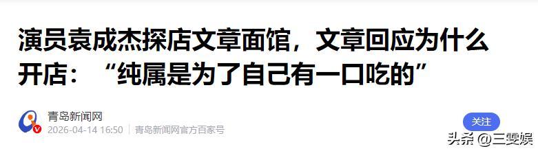 青島新聞網——演員袁成傑探店文章麪館,文章回應爲什麼開店:“純屬是爲了自己有一口吃的”