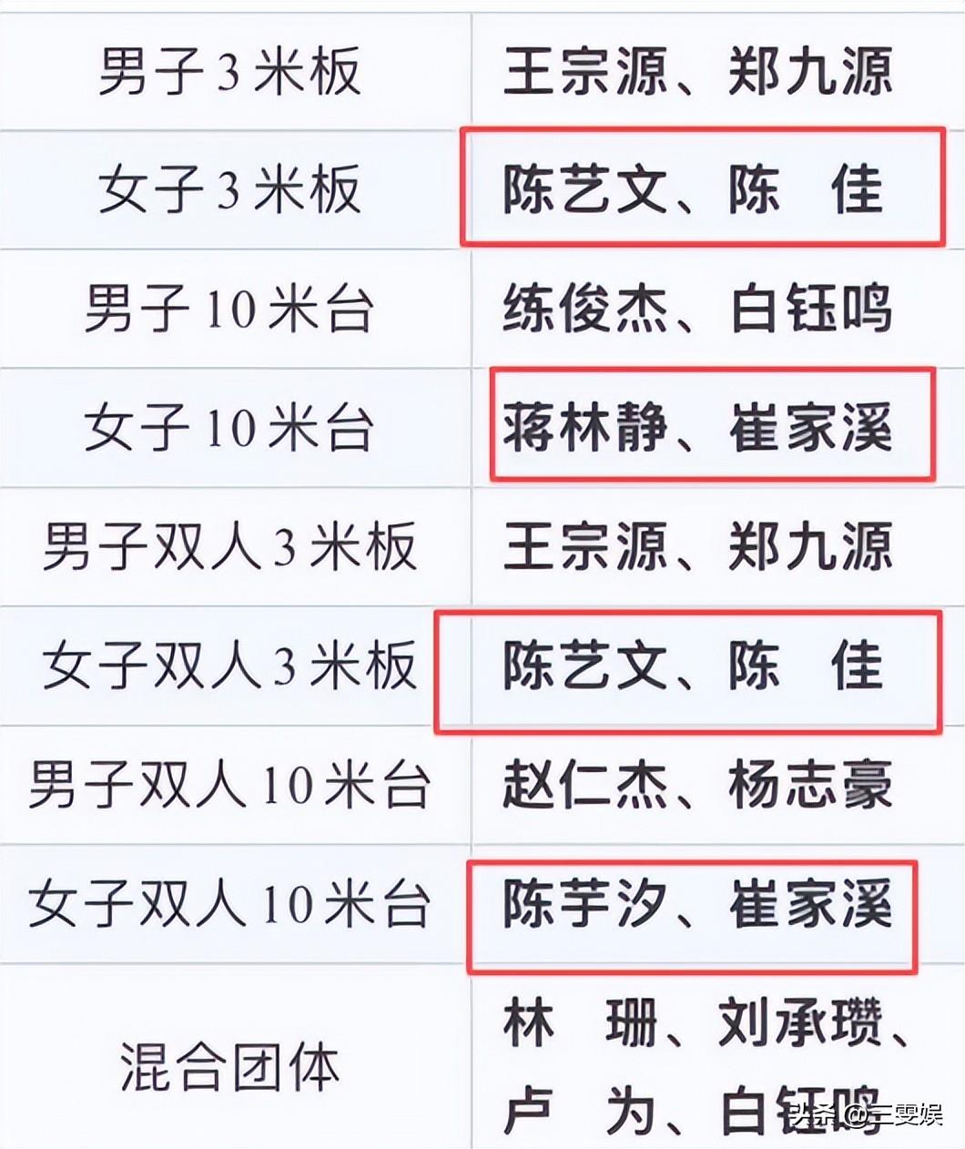 陳芋汐的名字還在,但項目欄卻有了不小的變動。