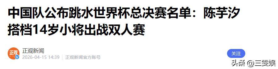 正觀新聞——中國隊公佈跳水世界盃總決賽名單:陳芋汐搭檔14歲小將出戰雙人賽