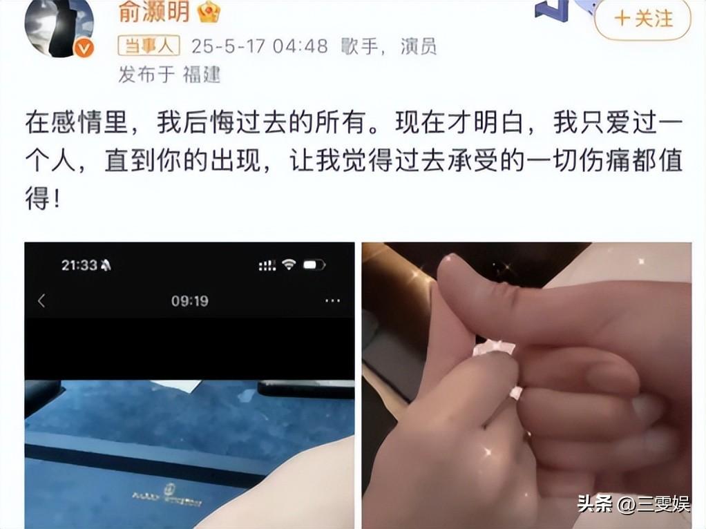 2024年6月,俞灝明發了張從背後摟着長髮女生的照片。