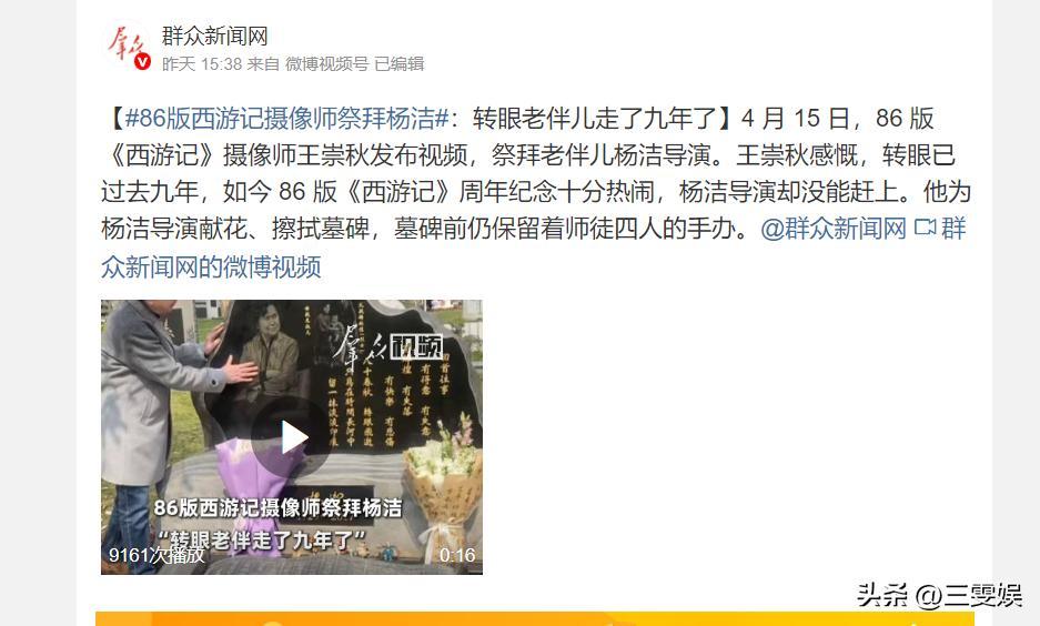 羣衆新聞網——【#86版西遊記攝像師祭拜楊潔#:轉眼老伴兒走了九年了】