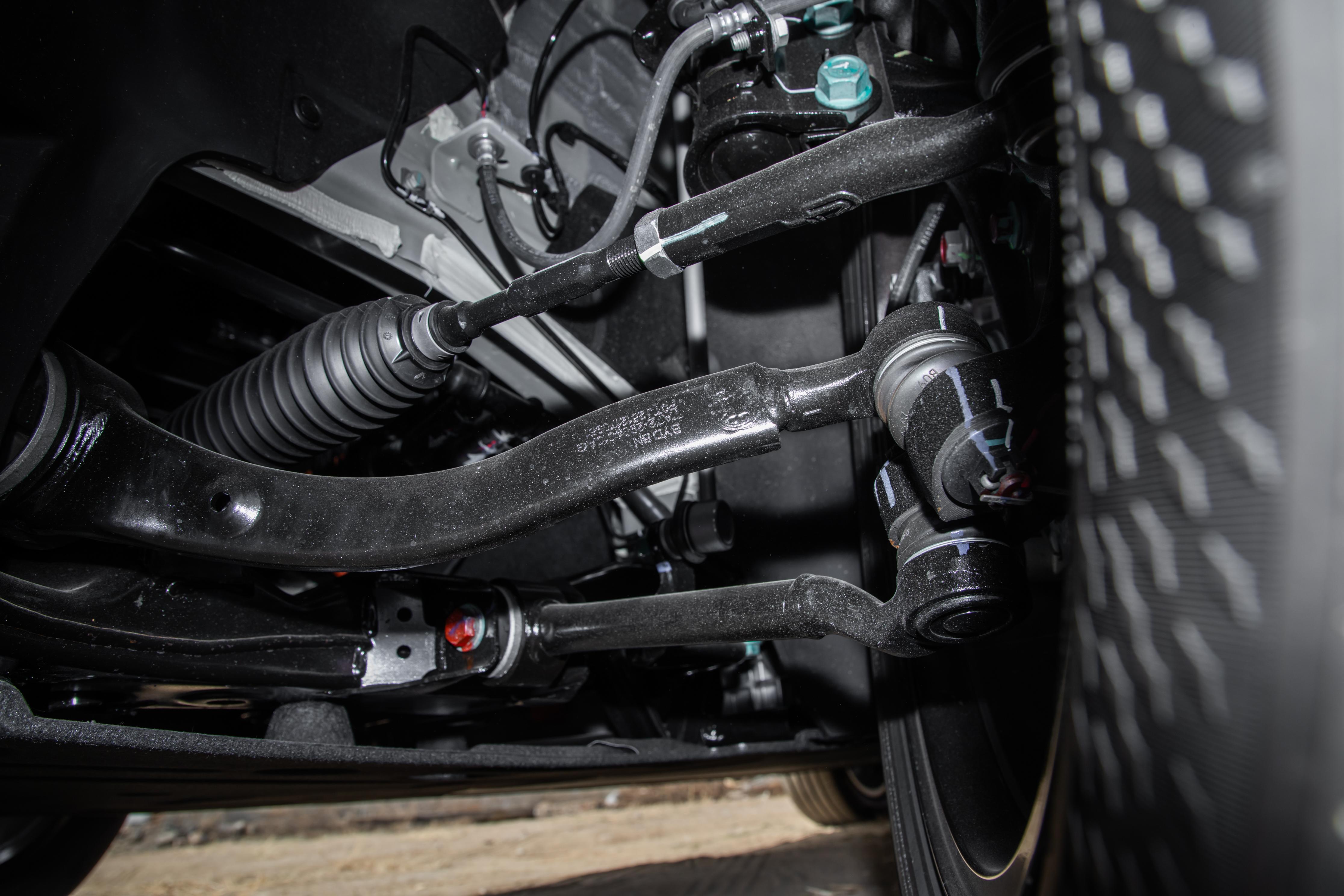 這臺車標配雲輦-C智能阻尼車身控制系統,還新增了路面預瞄功能,這是個很實用的功能,系統可以通過傳感器提前識別前面的井蓋、減速帶、坑窪路面,然候毫秒級調整懸掛的軟硬:遇到減速帶,懸掛會自動變軟,過的時候就像踩在棉花上一樣,顛簸感很小;過坑窪路面的時候,也能把顛簸過濾的很乾淨。還有防暈車模式,能主動調整懸架和動力輸出,讓老人、小孩坐起來不暈車,真正到做到了“移動舒適艙”。搭載後置後驅和前杆支柱式五連桿獨立懸架,高速不飄,過彎很穩,小區挪車、窄路會車也很輕鬆,兼顧了家用的舒適性和樂趣性。