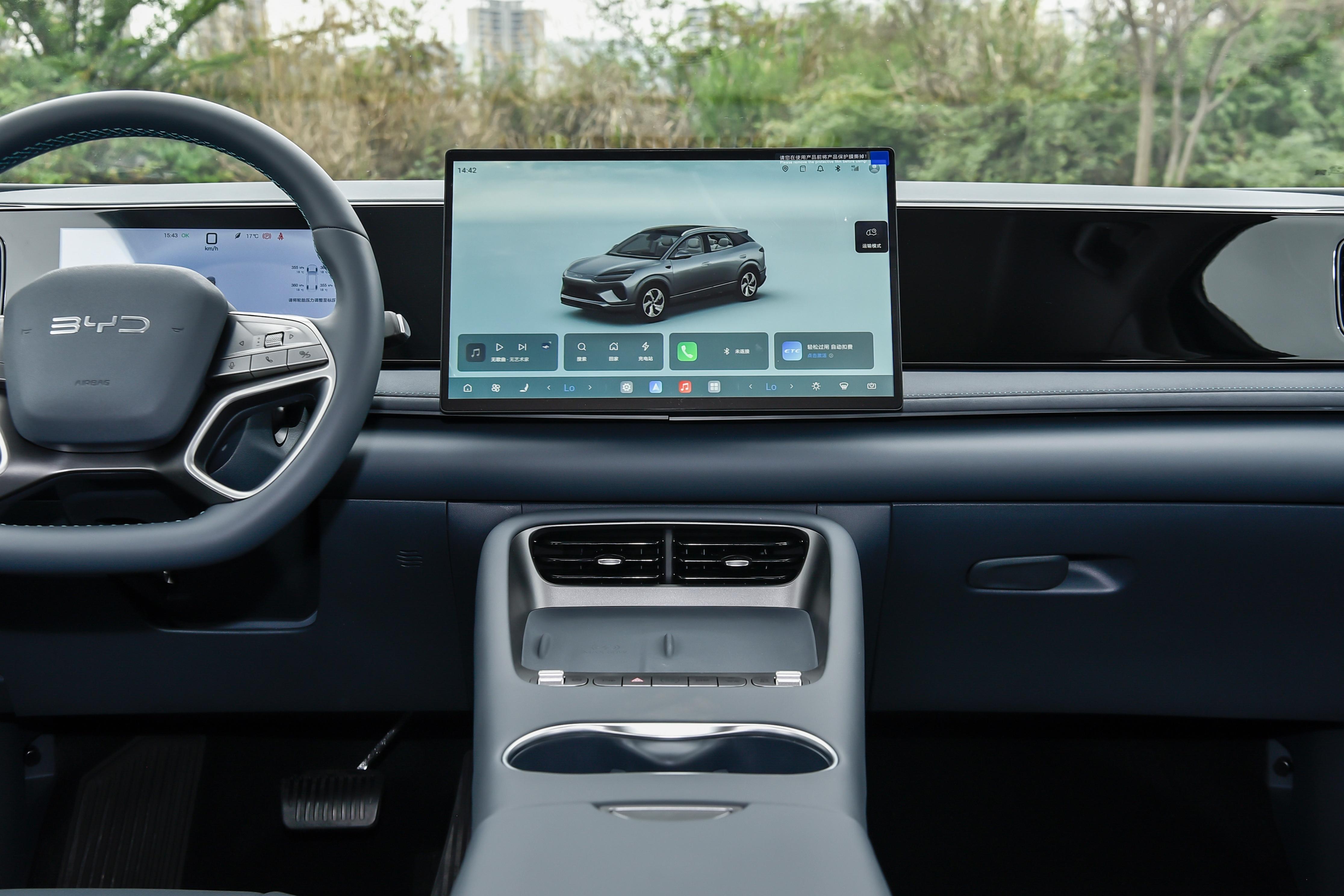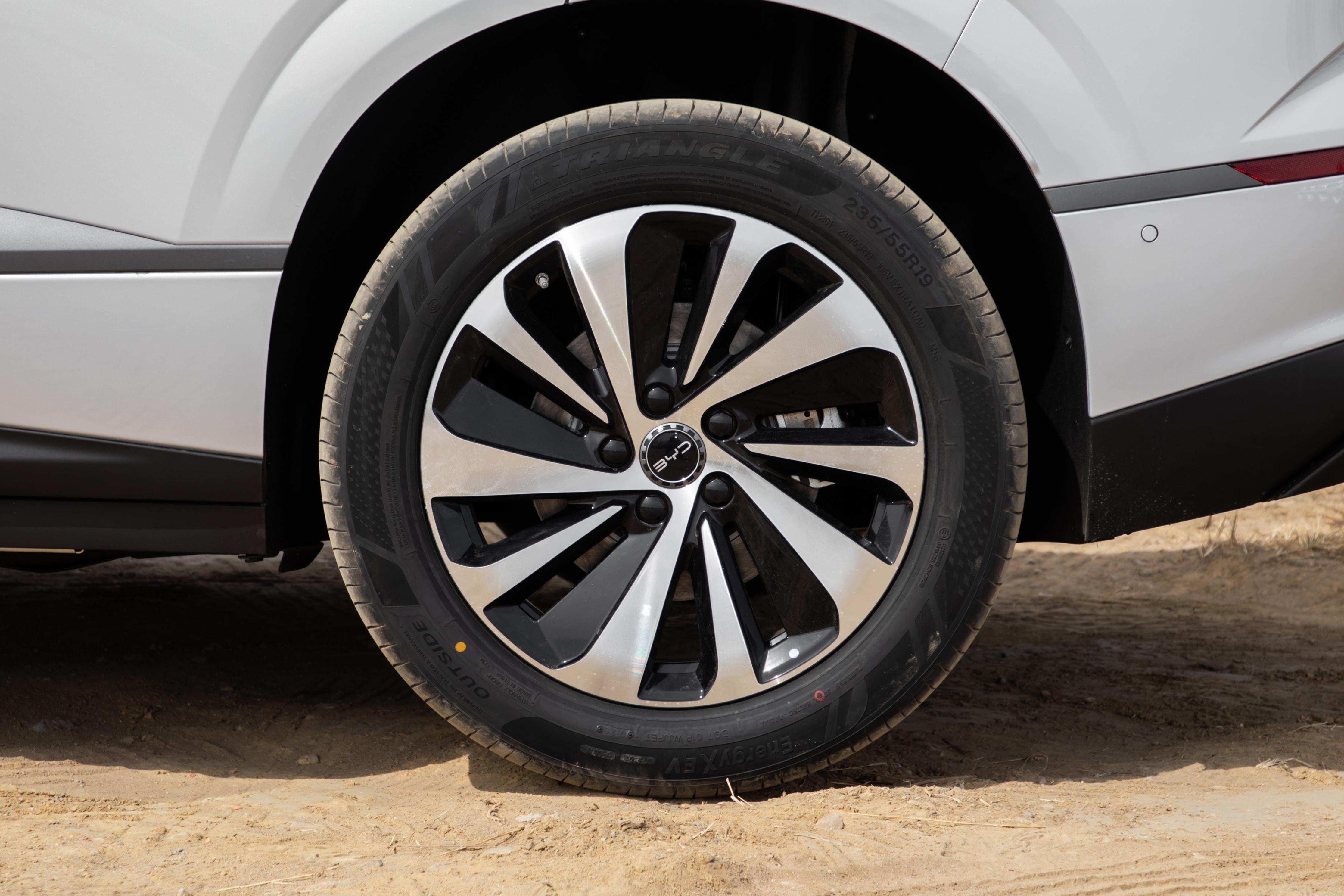 轉到側面,溜背線條搭配貫穿式腰線,整體很舒展,低風阻輪轂既好看又省電,風阻係數降低到0.28Cd,這點對續航很有幫助。更靚眼的是它的小轉彎半徑只有5.55米,小區裏挪車、窄路會車、一把方向就能過去,比起很多同級SUV 好開多了,女生也能輕鬆上手。車尾貫穿式尾燈,與前臉相互呼應,整體設計沒有過度誇張的元素,能夠滿足多數用戶的審美,家用場景顯得得體大方。