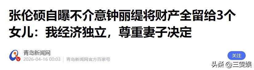 青島新聞網——張倫碩自曝不介意鍾麗緹將財產全留給3個女兒:我經濟獨立,尊重妻子決定