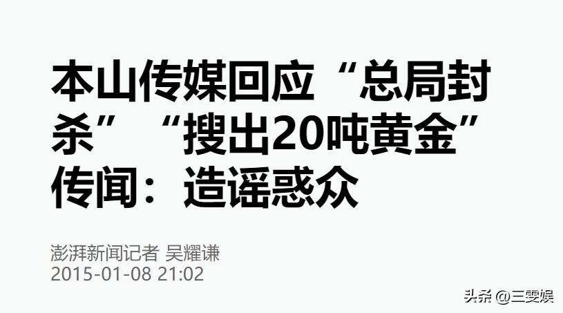 澎湃新聞——本山傳媒回應“總局封殺”“搜出20噸黃金”傳聞:造謠惑衆