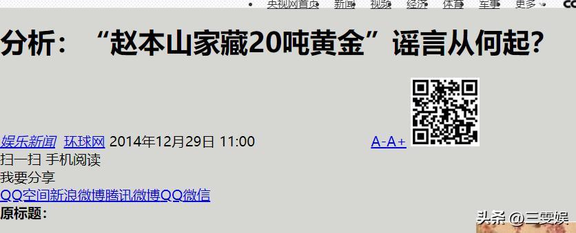 環球網——分析:“趙本山家藏20噸黃金”謠言從何起?