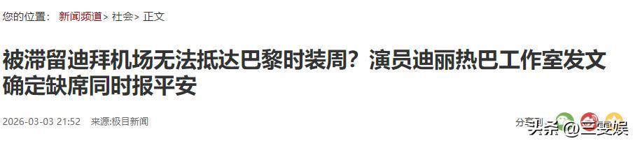 極目新聞——被滯留迪拜機場無法抵達巴黎時裝週?演員迪麗熱巴工作室發文確定缺席同時報平安