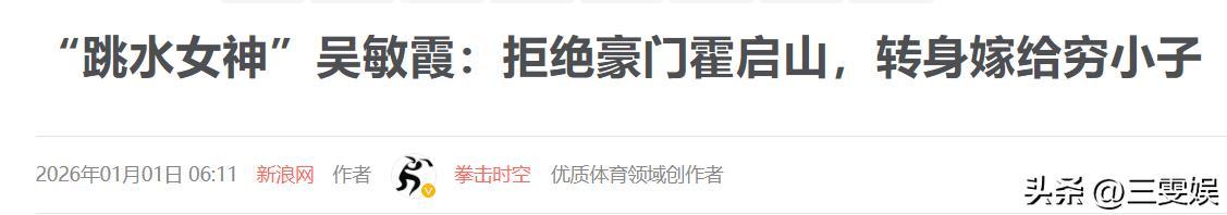 新浪網——跳水女神”吳敏霞:拒絕豪門霍啓山,轉身嫁給窮小子