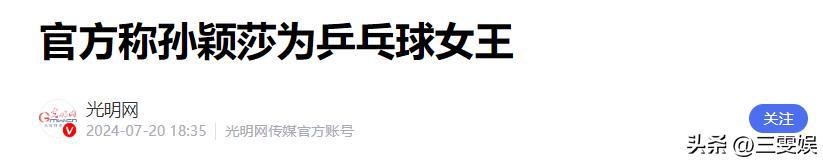 光明網——官方稱孫穎莎爲乒乓球女王