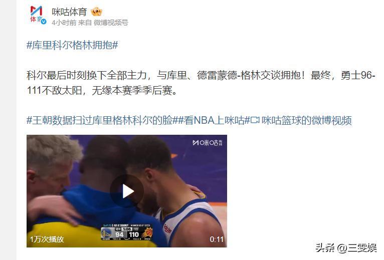 咪咕體育——庫里科爾格林擁抱