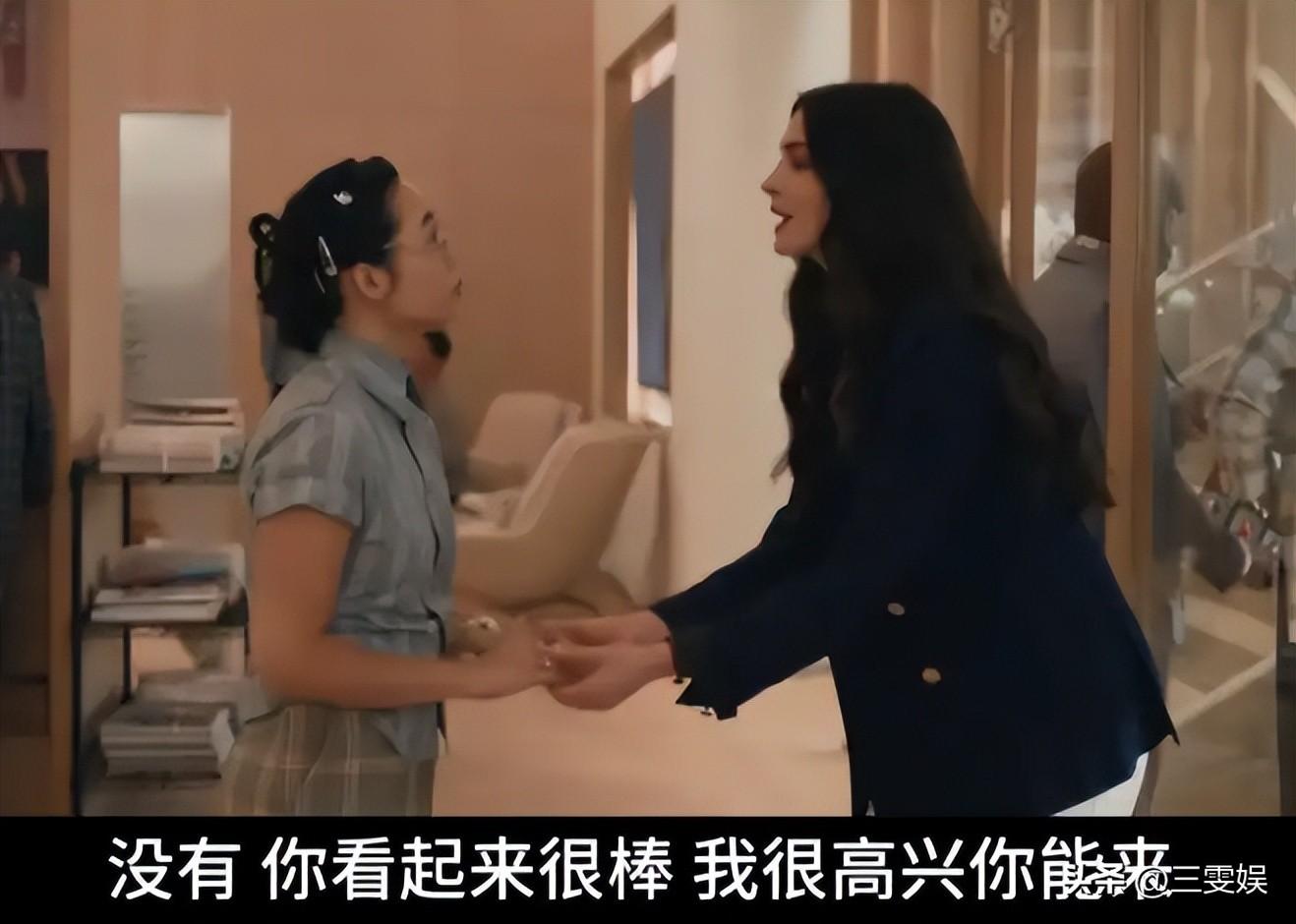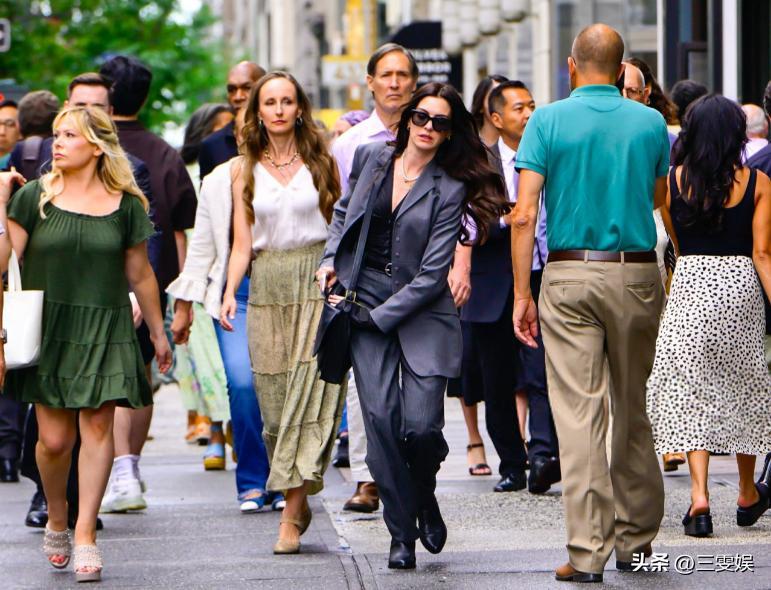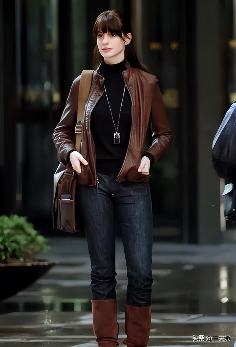 你再看網上流傳的那些片場路透,安妮·海瑟薇穿着普通的牛仔褲和大衣。