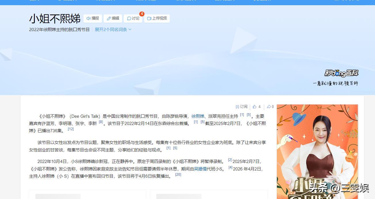 時隔14個月,在2026年4月20日晚播出的《小姐不熙娣》中。