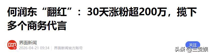 界面新聞——何潤東“翻紅”:30天漲粉超200萬,攬下多個商務代言