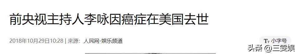 人民網——前央視主持人李詠因癌症在美國去世