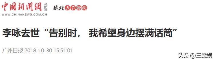 2018年,李詠的去世,震動了整個網絡。