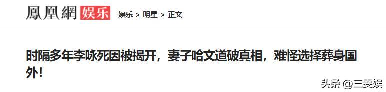 鳳凰網娛樂——時隔多年李詠死因被揭開,妻子哈文道破真相,難怪選擇葬身國外!