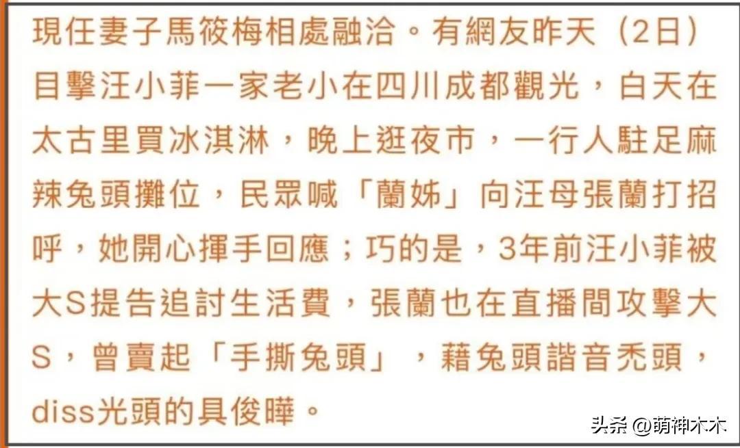 反觀S家,眼見着汪小菲、馬筱梅和大S留下的一雙子女越來越親密,臺媒報道重點竟然放在了別人買兔頭是內涵具俊曄上,甚至重提大S和張蘭恩怨過往。