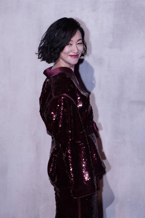 惠英紅身穿酒紅色亮片套裝,華貴大氣;蔣欣一襲粉色園林刺繡元素禮服,美麗靈動;胡杏兒全黑LOOK,又A又美;合詩雨白色襯衫搭配設計感披風和短裙,甜美俏皮。