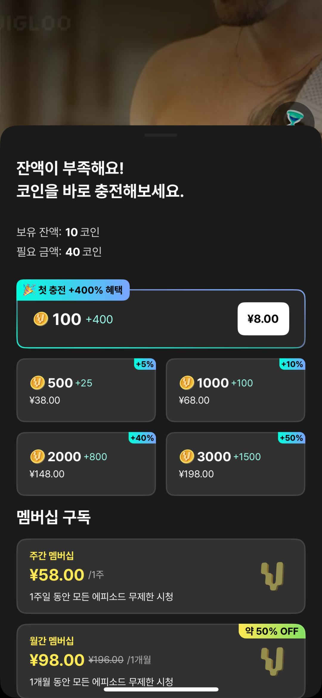 換句話說,韓國短劇不夠有“性價比“。目前韓國短劇平臺上採取了廣告解鎖、單集付費和訂閱制的模式。以韓國本土短劇平臺vigloo爲例,一週會員價格人民幣58元,月度會員98元,而韓國網飛的標準月度會員費約合人民幣71元。