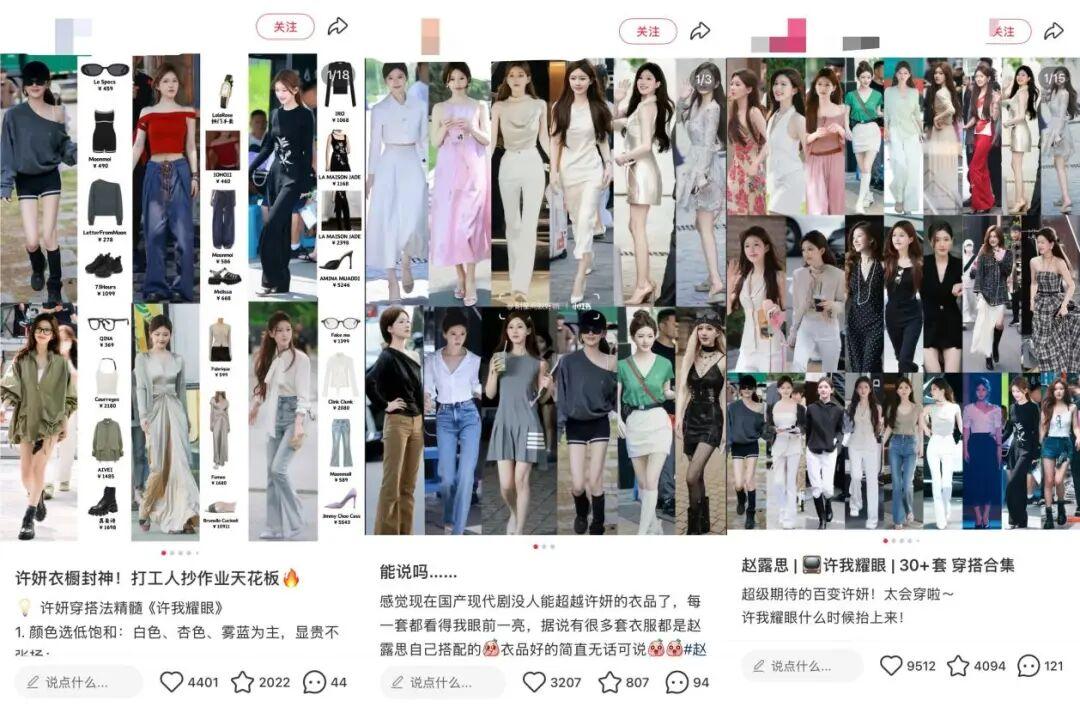 但這並不意味着代言人營銷不適合快時尚品牌,明星藝人身上的時尚種草力,在潮流趨勢、時尚單品的推動上不容小覷,明星藝人的機場穿搭、私服街拍、劇內穿搭往往有着超高的自然搜索量。例如趙露思本就是種草型藝人,《許我耀眼》期間,許妍(趙露思飾)就被稱爲“行走的穿搭教科書”,同款種草帖子在小紅書熱度很高;此前《偷偷藏不住》《我,喜歡你》等現代劇中,趙露思飾演的角色穿搭也均有不小的熱度。