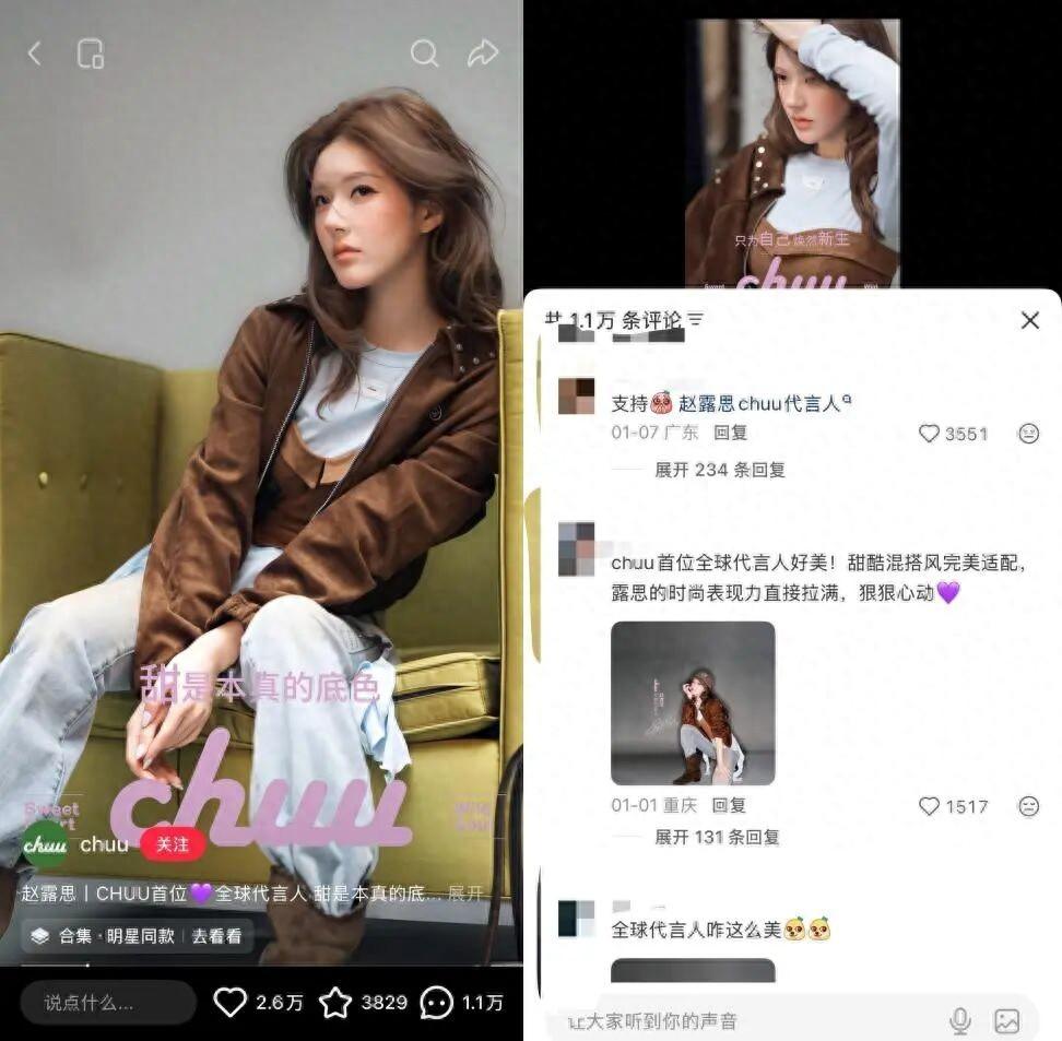 需要提及的是,CHUU是趙露思風波後官宣的首個代言,趙露思本就是高流量藝人、再加之被譽爲“職場反抗樣本”的解約風波,粉絲和行業對其接下來的發展及商務抱以極高關注。這種背景之下,CHUU與趙露思的合作,並沒有滿足大衆對“逆襲敘事”的高預期。