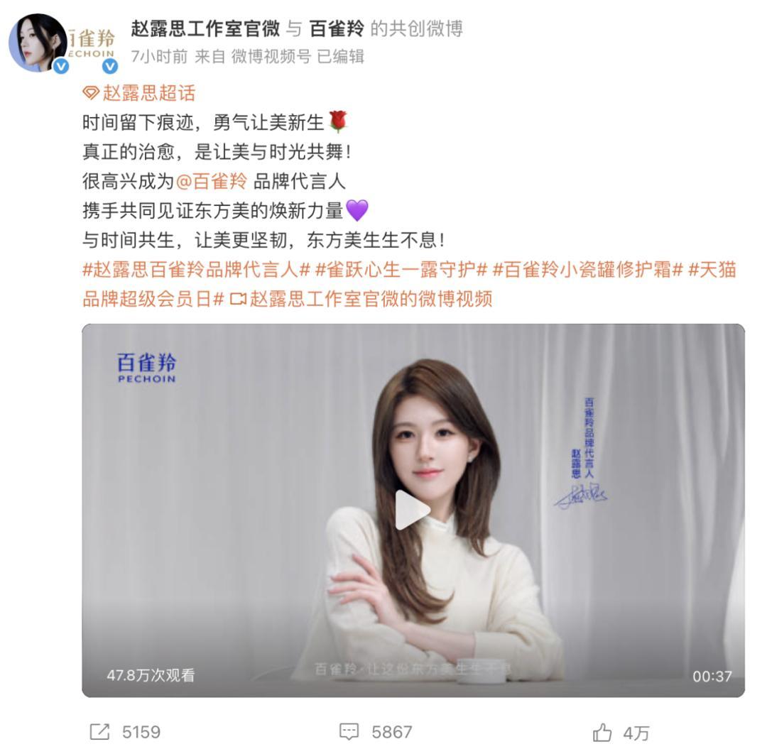 在與CHUU合作之前,趙露思就與F426、Teenie Weenie、FILA等多個女裝品牌有合作,且這些品牌與CHUU的客羣也有一定的重疊。且解約之後,趙露思也在高密度官宣代言中,1月16日,百雀羚官宣了趙露思爲品牌代言人,可以預見接下來還會有商業合作釋出。