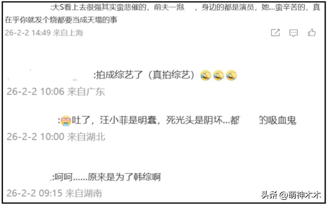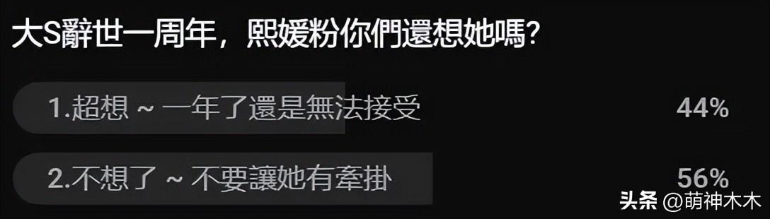 有網友在儀式直播彈幕區開設了投票,有一個選項表達了很大一部分人的心聲,陌生人的悲傷感慨就算持續着,也是埋在心底,但S家不一樣,他們只要公開表現一次,就會讓自己和大S再次受到關注,一直以來,都是S家抓着大S不放。