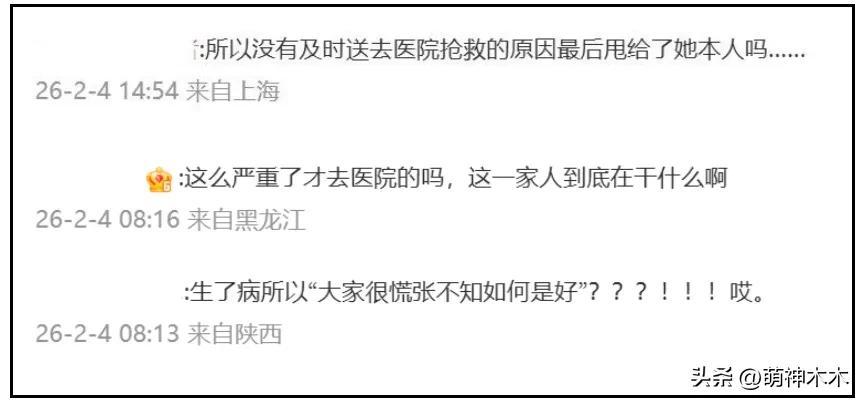 臺媒報道了韓國綜藝內容,強調大S帶病去日本、心臟不舒服泡溫泉、拒絕轉診大醫院等細節,評論區立馬察覺出不對勁,不止一位網友指出關鍵,難道都是大S自己的問題嗎?明知大S生病了,還要組織全家人去日本旅遊的人是誰,爲什麼沒人敢提?